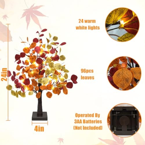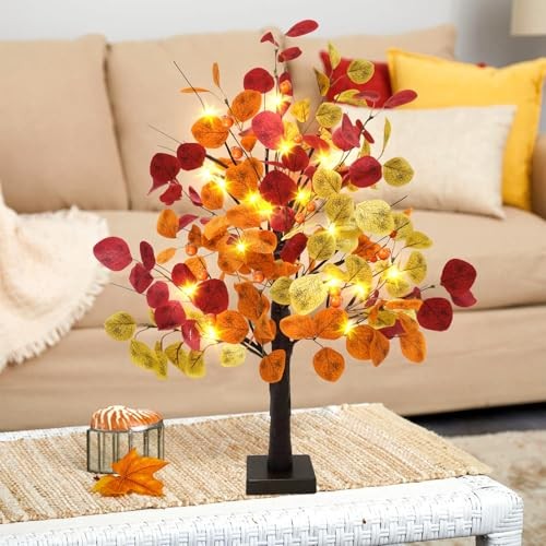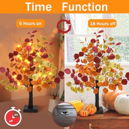 $ 28.082 Pack 20 Inch Prelit Fall Maple Tree with Timer for Thanksgiving Decor