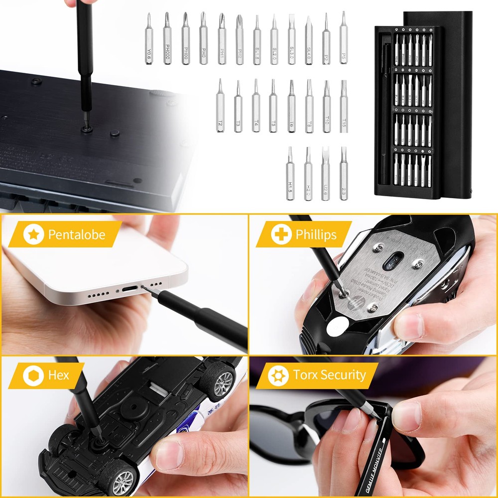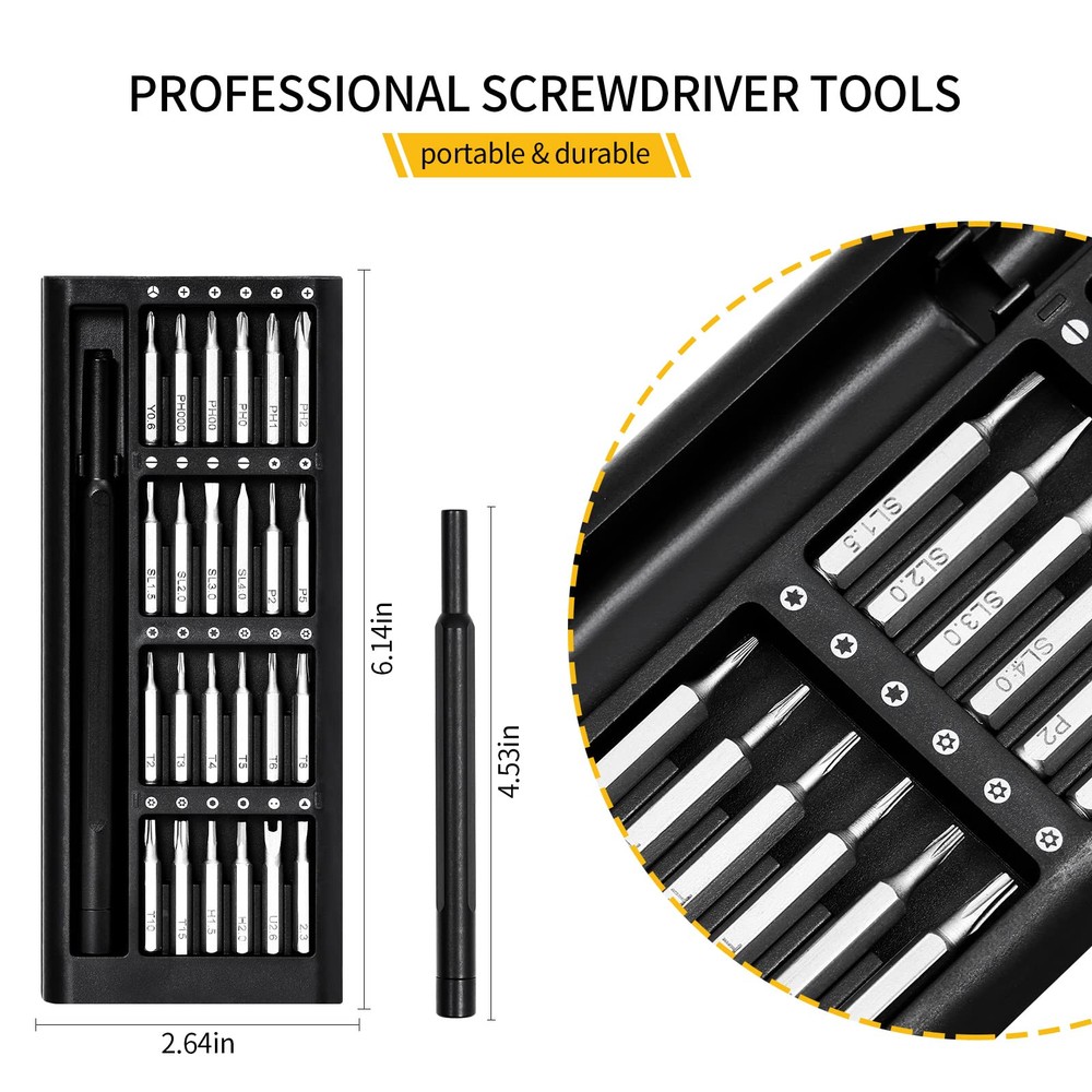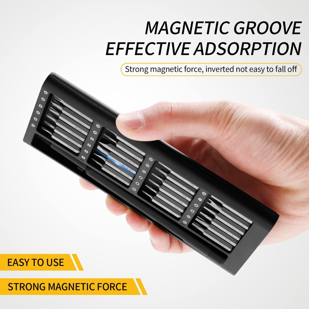 This precision screwdriver set is a game-changer! The magnetic bits make handling tiny screws effortless—no more frustrating drops or slips. The S2 steel bits are incredibly durable and resist rust, while the aluminum handle feels sturdy with a comfortable anti-slip grip. The compact case keeps everything organized, and the variety of bits covers almost any repair need. Perfect for electronics, glasses, or small DIY projects—highly recommended for its quality and convenience!