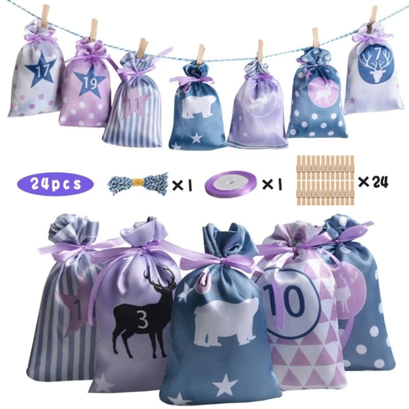 Features: brand new and high quality Designed with sophisticated and unique advent calendar bags will creat the festive mood, perfect for home decoration. With rope and clips, you can use the Christmas Advent Calendar Bags on the Christmas tree,wall,window. Easy to use, you can easily count down to Christmas by putting candy or gifts in their bags every day. Perfect for Christmas party decorations, such as Christmas gift bags, candy bags, goody bags. Christmas Advent Calendar Bags with drawstring, perfect decoration for Christmas. Specifications: Type: Advent Calendar Bags Material: Color: As picture shown Size:app. 10 x 15cm / 3.93 x 5.9in Quantity: 1set Package Includes: 24 x Advent Calendar Bags 24 x clips x Drawstring Rope x Hanging Rope note: 1cm=10mm=0.39inch No retail package. Please allow 1-2cm error due to manual measurement. pls make sure you do not mind before you bid. Due to the difference between different monitors, the picture may not reflect the actual color of the item. Thank you!