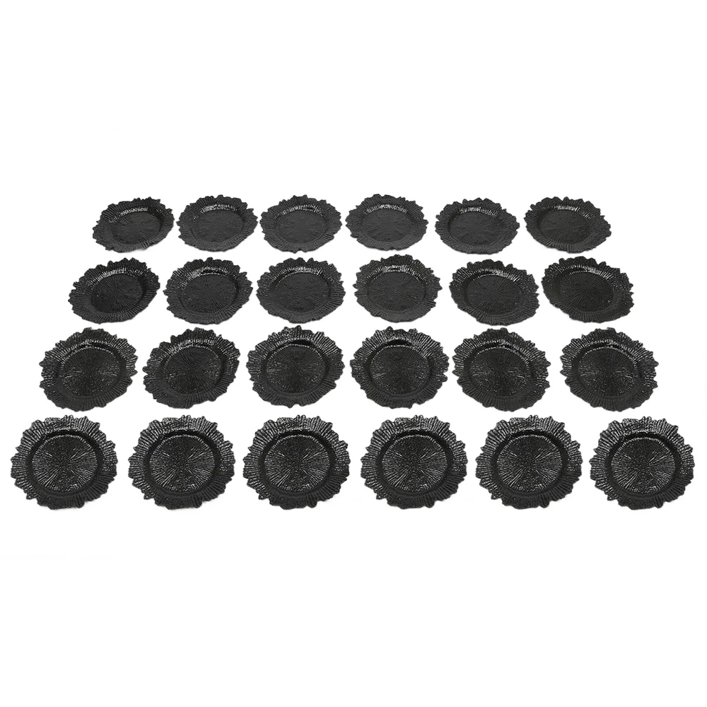 Application This product is ideal for banquets, holiday parties, barbecue parties, dating, birthday parties, fine dining, family dinners, etc. It is suitable for dishes with a total diameter between 8 and 11inches. Specification Material: Plastic Color: Black Process: Electroplating Assembly Required: No Style: Modern Number of Pieces: 24 Outer Diameter: 32cm/12.6in Inner Diameter: 20cm/8in Gross Weight: 4.7kg/ 10.36 lbs Net Weight: 4.2kg/ 9.26 lbs Package Size: 33*33*18 cm/12.99*12.99*7.09 in Package Included 24 * 12.6-inch Charger Plates 24pcs Charger Plates Round Reef Plate 12.6in Dinner Plate Decor Mat Tableware Description: With the improvement in living standards, more and more people start to pay attention to the taste of daily dining. Using beautiful charger plates during meals can not only improve the quality of eating but also increase the pleasure of dining. Our products are made in marine style, which can add gorgeous style and modernity to your dining table. Features&Highlights: 24-piece Set: The 24-piece set can meet your large dining needs, and it is suitable for large parties, weddings, and other events. High-quality Material: : This product uses high-quality plastic as raw material, featuring high hardness, anti-drop , and high abrasion resistance . Large Size: The 12.6-inch outer diameter is suitable for holding main dishes, side dishes, desserts, etc., and is less likely to spill food out, thus keeping the table neat and tidy. Specification Material: Plastic Color: Black Process: Electroplating Assembly Required: No Style: Modern Number of Pieces: 24 Outer Diameter: 32cm/12.6in Inner Diameter: 20cm/8in Gross Weight: 4.7kg/ 10.36 lbs Net Weight: 4.2kg/ 9.26 lbs Package Size: 33*33*18 cm/ 12.99*12.99*7.09 in Package Included 24 * 12.6-inch Charger Plates Details: Large Size Bottom: The 8 inches diameter bottom has high stability, thus making the plate less likely to be knocked over. Electroplating Process: The sophisticated electroplated surface is not only more glossy but also makes it easier to wipe off oil stains. Application: This product is ideal for banquets, holiday parties, barbecue parties, dating, birthday parties, fine dining etc. It is suitable for dishes with a total diameter between 8 and 11inches. Key Features: High-quality Material: This product uses high-quality plastic as raw material, featuring high hardness, anti-drop , and high abrasion resistance . Fashionable Appearance: The coral reef-like pattern and classic round shape can easily add a modern touch to every kind of dish and table. It can turn any bland tablescape into a gorgeous banquet, allowing you to enjoy a fine meal at all times. 24-piece Set: The 24-piece set can meet your large dining needs, and it is suitable for large parties, weddings, and other events. Space Saving: The stackable design can save you a lot of storage space, and you can easily store them in the dining cabinet. Easy to Clean: The simple product structure and the unique texture that is easy to grip make the product easy to clean. You just need to wipe with a rag to quickly clean the surface oil stains. Ideal Gift: The sea-inspired product is not only a practical dinner plate, but also serves as a great home decoration and is an ideal gift for friends, loved ones, and colleagues. Large Size: The 12.6-inch outer diameter is suitable for holding main dishes, side dishes, desserts, etc., and is less likely to spill food out, thus keeping the table neat and tidy. Scald-proof : The wide outer rim provides excellent heat insulation and prevents scalding when passing the plate, thus making the party safer. Notes Please allow the slight color difference caused by the shooting light and the 1-3 cm error due to manual measurement, and make sure you do not mind before ordering. Payment Delivery details Terms of sales About us Contact us Payment We accept ebay payment 。 Fees such as import duties, taxes are not included in the item price or shipping costs. These charges are the buyer's responsibility. Delivery details Shipping: 2-9 working days to: USA Terms of sales We maintain high standards of excellence and strive for hundred percent customer satisfaction. Feedback is very important to us. We hope that you contact us immediately before you give neutral or negative feedback, so that we can address your concerns. It is impossible to address issues if we do not know about them! About us Your satis faction is our ultimate goal. We work hard to earn your trust and future business. Our certified technicians have tested each item before shipping. The unit comes with 1 year limited warranty on all manufacturing defects. a) If you receive a defective item, you may return it or ask for a discount. Please contact us within 14 days after you receive the package. b) What you returned must be intact and in its original packaging as re? u. Customer is responsible for shipping costs of the returned item. c) We will cover the cost of shipping back t with the shipping rate indicated in the registration page. We will send you a new unit or refund the full payment you paid. Thank you. Contact us Business Hour Business Hour: Monday To Friday: 8:30 AM to 5:00 PM (Beijing China time) Due to time zones, our reply to your questions may not be immediately. But within above working time, we will reply your email within 24 hours. If it's non-workdays, please kindly be patient and wait till Monday. Please contact us with ebay message. Please feel free to contact us if you have any questions. Monday To Friday: 8:30 AM to 5:00 PM (Beijing China time) Due to time zones, our reply to your questions may not be immediately. But within above working time, we will reply your email within 24 hours. If it's non-workdays, please kindly be patient and wait till Monday. Please contact us with ebay message. Please feel free to contact us if you have any questions. On Jan 7, 2025 at 20:57:51 PST, seller added the following information: