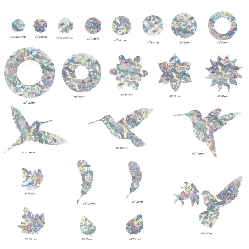 Features: and high Suitable for: The 24 piece set of static glass adsorption stickers is a must have for anyone looking for a stylish and practical way to decorate their home. PET film , these adhesive static glass adsorption stickers are for bird strikes and providing any smooth glass. Practical: These stickers are for anyone who want to add a touch of and practicality to their home or office. Decoration: Whether you're looking to decorate your window or bird strikes, these stickers are for any smooth glass. With their adhesive and easy to remove backing, these static glass adsorption stickers are the way to add and functionality home or office. Specifications: PET Size: Blend Sizes Color: As the picture shown Quantity: 24Pcs Package Includes: 24xGlass Adsorption Stickers(other accessories in the picture is not included.) note: Please allow 0-1cm error due to manual measurement. please make sure you do not mind before you bid. Due to the difference between different monitors, the picture may not reflect the actual color of the item. Thanks!