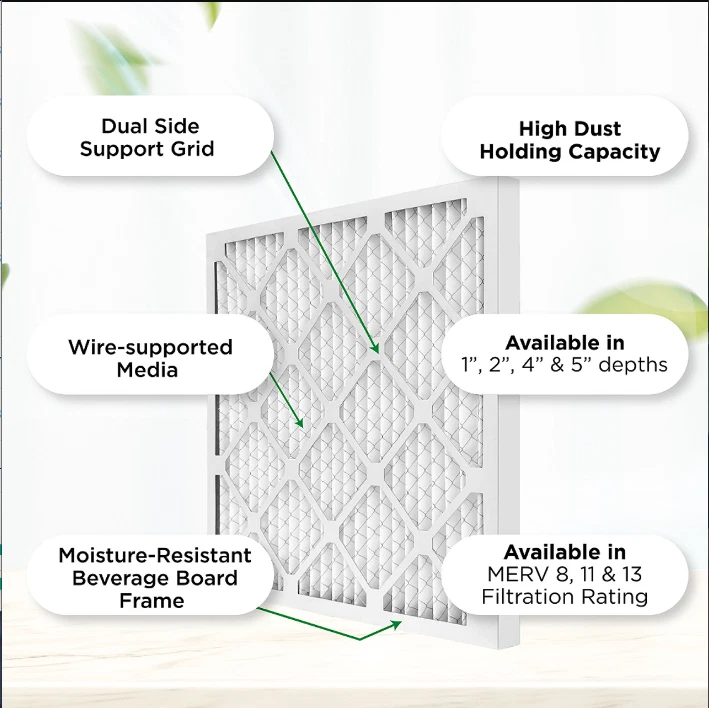 24x24x1 MERV 8 HVAC Air Filters (6-Pack) Dimensions: 24 x 24 x 1 inches Actual Size: 23 3/8” x 23 3/8” x ¾” Filtration Rating: MERV 8, MPR 600, FPR 5 The 24x24x1 MERV 8 air filters provide a powerful and affordable solution for improving air quality in both residential and commercial spaces. These filters are designed to capture harmful airborne particles like lint, dust, pet dander, pollen, dust mites, and mold, helping to circulate cleaner air and create a healthier environment. By regularly replacing these filters, you will reduce the buildup of dirt and particles in your AC and furnace systems, helping them run more efficiently, saving on energy costs, and extending the life of your HVAC unit. Key Features: Efficient Filtration: Extended surface pleated panels capture more dust and particles Energy Savings: Low airflow resistance minimizes energy consumption Durability: Strong double-wall frame with galvanized steel support Moisture Resistant: Beverage board frame ensures no microbial growth Long-Lasting Performance: High dust holding capacity for extended use Recommended Replacement: Every 90 days Made in the USA Whether for a home or business, these filters offer excellent performance and cost savings, with bulk orders delivered quickly and efficiently. Filtration Rating Definitions: MERV: Minimum Efficiency Reporting Value – the industry standard rating by ASHRAE MPR: Micro-Particle Performance Rating – Filtrete’s filter rating system FPR: Filter Performance Rating – Honeywell’s filter rating system