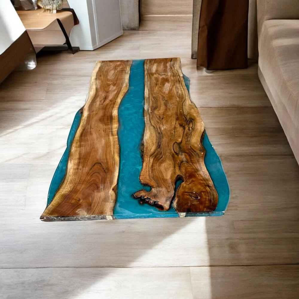 Table Top Size: 48"x24" Inches Our epoxy tables are custom-made, and we strive to use the same type of wood as depicted in our advertising pictures. However, it is not always possible to find an exact match, which may result in slight variations in the epoxy color and wood grain pattern. It's important to keep in mind that the table you receive may not be an exact replica of the advertising picture. We ensure that our clients are informed of every step of the process, from the selection of the wood to the final finish of the table. We keep our clients up-to-date throughout the process to ensure transparency and avoid any misunderstandings. Additionally, our price includes air delivery right to your doorstep via DHL/Fedex / UPS and insurance protection. Please note that you may be responsible for paying any applicable tax and duty on delivery. If you have any concerns or doubts, we highly recommend addressing them before making a purchase. Clearing any doubts beforehand will help avoid any issues and ensure a smooth buying process. It's important to note that any accessories depicted in the advertising images, such as knives, chairs, or lighting, are not included with the product and are only used for photography purposes. Additionally, please keep in mind that the price of the product does not include any type of legs. If you would like legs included, we can provide them for an additional cost. We recommend addressing any questions or concerns before making a purchase to avoid any misunderstandings.