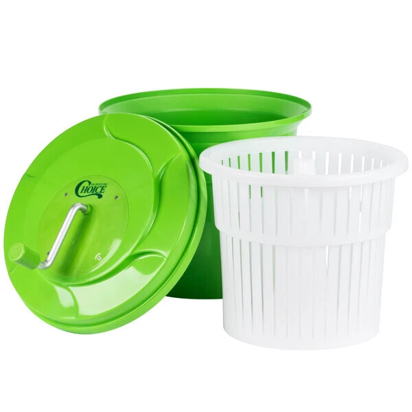Choice 2.5 Gallon Manual Salad Spinner Lettuce Dryer Washer Large Commercial Restaurant Wet, soggy salad is not only unappealing, but it causes salad dressings to run off of leaves. This may frustrate customers and make them use more dressing to enjoy the flavor, costing your business more money. This 2.5 gallon salad spinner / dryer quickly removes excess water with each spin of the handle, ensuring that your salads greens are dry while providing a surface for salad dressing to cling. Large Capacity This unit's large 2.5 gallon capacity can handle 2-3 heads of lettuce at once so you can always have fresh, dry salad greens on hand. It is perfect for making a variety of side salads, or a few large signature salads. Easy to Use Simply load the chopped greens into the interior basket, place the lid on the body, and give the easy-to-grip, ribbed handle a whirl! In no time at all your wet lettuce will dry off to make the perfect base for any salad. Durable Made of sturdy plastic, this spinner will last in your commercial kitchen and will quickly become a necessary part of your daily operations. Hose Drain The spinner's bottom features an attached hose, which drains away water, preventing build-up and re-soaking of your vegetables. Specs Quantity 1/Each Shipping Weight 7.38 lb. Height 13 3/4 Inches Bottom Diameter 9 1/4 Inches Top Diameter 12 1/2 Inches Capacity 2.5 Gallons Color Green Features With Drain Heads of Lettuce 2 - 3 Material Plastic Power Type Manual Product Line Choice Food Prep N.B : Products shipped to California are subject to Prop 65, A number of items CAN NOT BE SHIPPED TO CALIFORNIA and order will be canceled and refunded due to. Our Business 100% Customer Satisfaction We go above and beyond to ensure you receive the best level of service. Returns We want you to be happy with your purchase, however in the rare occasion that you are not, please let us know and we will contact you to arrange either a collection or a refund. Please CONTACT US before leaving any negative feedback and we will promptly sort out any issue with your order. BEST WIHSES 6021818