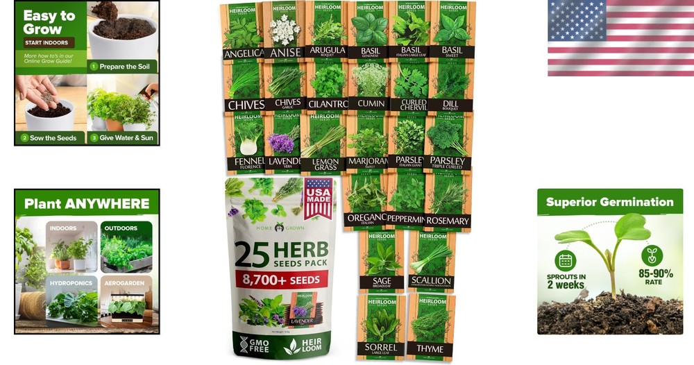 This herb seed pack is a game-changer for any home gardener! With over 8,700 seeds and 25 flavorful varieties, it’s perfect for both beginners and seasoned growers. The seeds sprouted quickly, and the herbs are thriving indoors and out. Love the variety—everything from basil to lavender. Highly recommend for fresh, homegrown flavors!