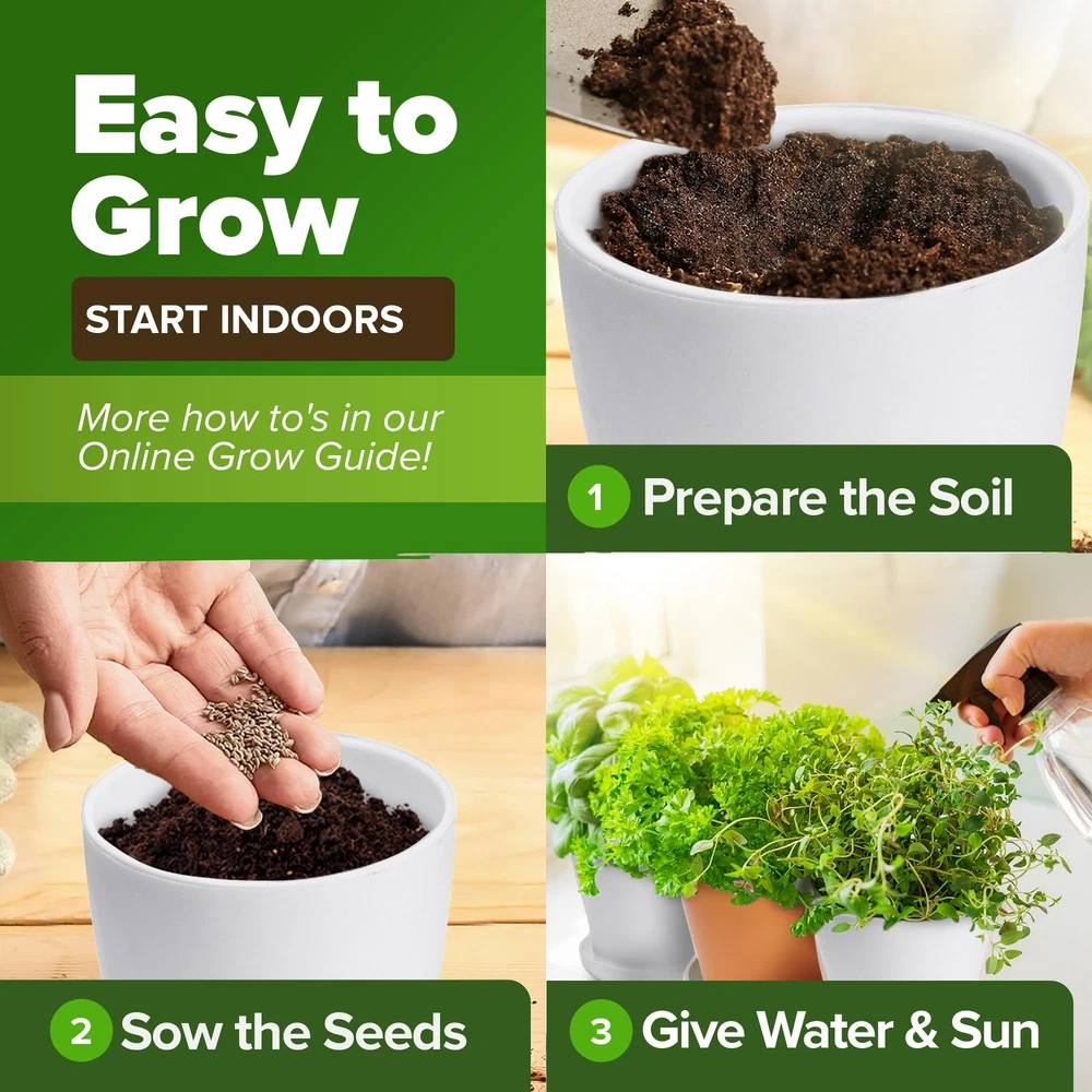 GROW 25 CULINARY HERBS - Your favorite herb seeds for planting in convenient pack. Enjoy flavorful herbs like angelica, basil, chives, cilantro, fennel, lavender, mint, oregano, parsley, cumin, sage, thyme and more. 8700+ SEEDS, GROW GUIDE - Explore our top-quality herb seeds variety pack. Elevate your gardening with our comprehensive online grow guide, offering expert tips for successful cultivation. HIGH GERMINATING HERBS SEEDS - Tested and guaranteed germination rate under optimal conditions, ensuring every flourishes. Plant indoors, outdoors for a year-round supply of fresh herbs. Ideal herb seeds for hydroponic garden. NON GMO, HEIRLOOM, USA SEEDS - Our open-pollinated herb seeds are sustainably sourced in the USA, guaranteeing top quality without genetic alteration. Each is sealed for freshness. Experience excellence with our culinary herb seeds variety pack. BEST VALUE FOR MONEY - Our culinary herb garden seeds variety pack offers more garden herb seeds than other brands. Wrapped in attractive, fresh-looking packaging, it's also an ideal gift for friends and family. Get your herb garden seeds today!