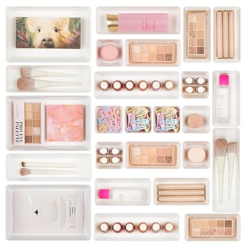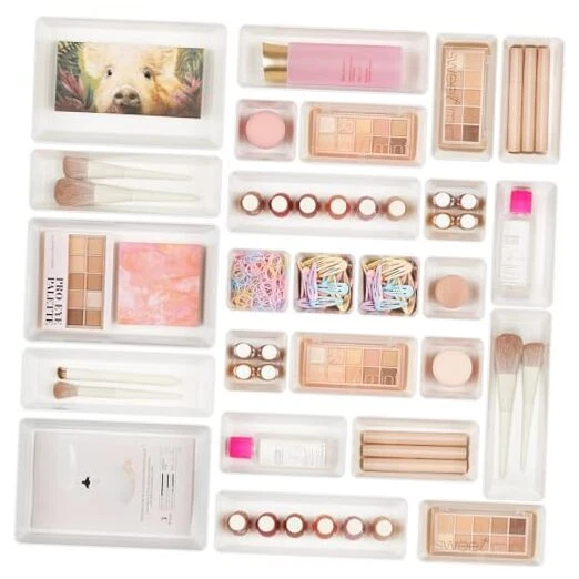 Return Policy Fast Delivery Trusted seller 25 PCS Plastic Drawer Organizers Set, 4-Size Versatile Bathroom and Vanity Drawer Organizer Trays, Storage Bins for Makeup, Bedroom, Kitchen Gadgets Utensils and Office Product Description 【Make Everything Organized】These clear versatile drawer dividers trays are perfect for any place in your home. Fit all kinds of drawers, such as vanity / bathroom / kitchen / office drawers/ craft room, ideal for organizing cosmetics, makeup tools, hair accessories, jewelry, pins, office supply, craft supplies, utensils, etc. 【Combination of 4 Different Sizes】One set includes 25pcs storage bins in 4 different sizes, which help you customize combinations to store items and organize drawer in shelf/ closet/ cabinet/ dresser . Includes: 9 x 6 x 2 inches (3pcs), 9 x 3x 2 inches(6pcs), 6 x 3 x 2 inches(8pcs), 3 x 3 x 2 inches(8cps). 【Non-Slip and Durable】Extra 200pcs silicone pads are included, just stick them on the bottom of the plastic trays for non-slip. Made of durable and clear plastic, so you can see what’s in it without digging around or making a mess, help you get a neat lifestyle. 【Stackable Storage】The drawer bins can be stacked into one other when you not use them, that will save much space and organize well. You will find it's so easy to keep things neat and tidy. 【Easy to Clean】Our desk drawer storage bins are easy to be wiped clean with a damp cloth and perfect for keeping everything in its place. Convenient for use in your daily life, make everything look beautiful and better organized. Shipping Returns Payment Shipping Shipping is FREE to all addresses other than APO/PO boxes in the lower 48 states. All our stock ships from US-based warehouses. Shipped via USPS or UPS (depending on location and package weight) Unless stated otherwise, all orders will ship within 24-72 hours of your payment being processed. Check our feedback to see the great reviews of FAST shipping we offer. Returns Seller does not accept returns Payment We currently accept payment via eBay managed payments only. Once payment is cleared, we will dispatch your shipment within 1-3 business days. Please refer to the "Shipping" tab for more information regarding shipping speed to your destination.