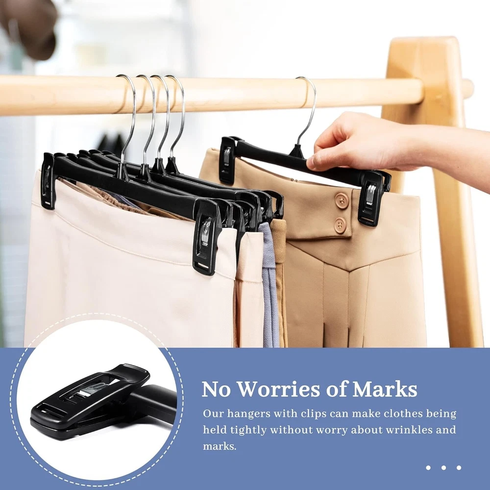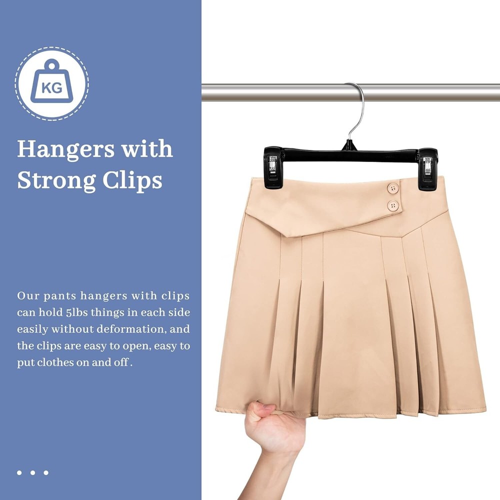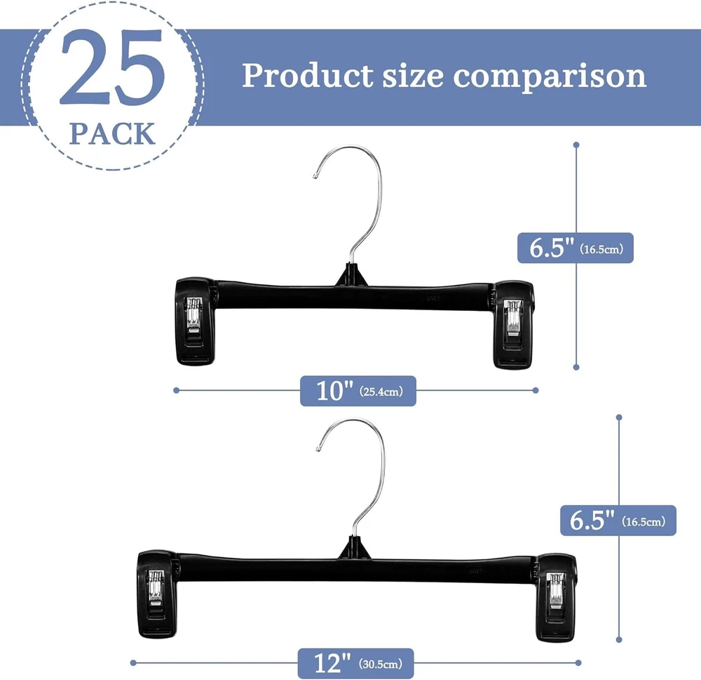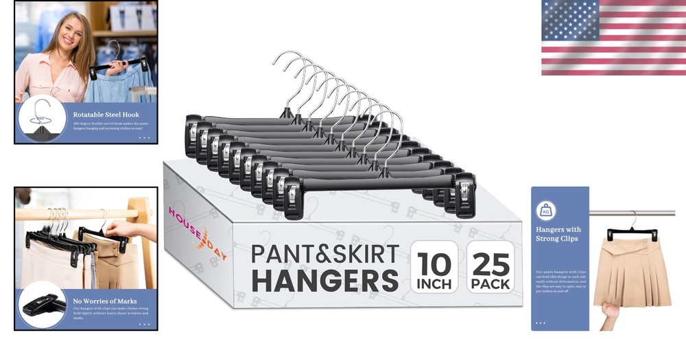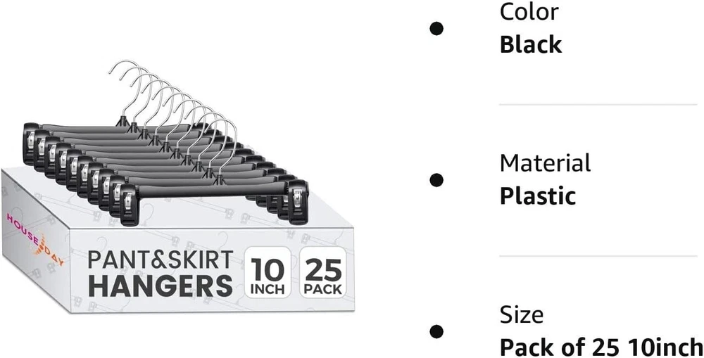 25 Pack Black Plastic Skirt Hangers - Non-Slip Clips, 360 Swivel Hook, Space-Saving Design ‹ › ‹ › ‹ › ‹ › ‹ › ‹ › ‹ › ‹ › ‹ › ‹ › ‹ › 25 Pack Black Plastic Skirt Hangers -Non-Slip Clips, 360 Swivel Hook, Space-Saving Design Features: Large non-slip clips prevent clothes from wrinkling or indentations 360° rotatable hook for easy hanging and accessing clothes Thickened material for durability Space-saving design with compact size Well packaged to prevent breakage during shipping 25 hangers in one pack, sufficient for family use Benefits: Robust pinch grip clips can hold heavy weight Rust-resistant stainless steel swivel hook for longevity Sturdy construction ensures long-lasting use Creates a uniform look in your closet Economical and practical for family use Why choose our 25 Pack Black Plastic Skirt Hangers? Say goodbye to flimsy hangers that can't hold your clothes properly. Our 25 Pack Black Plastic Skirt Hangers are designed with large non-slip clips and a 360° rotatable hook for easy access to your clothes. Made of thickened material, these hangers are durable and space-saving, perfect for organizing your closet. With 25 hangers in one pack, there's plenty for the whole family to use. Don't settle for cheap, low-quality hangers - choose our sturdy and reliable skirt hangers for a neat and organized closet! Shipping Free & Fast Shipping - We offer free shipping to most of the USA with a normal delivery time of 3-7 days. However, due to the current situation, additional delivery time (up to 3 weeks) may be required for some items. Alternative Carriers - We may use alternative carriers (e.g. USPS, FedEx, UPS, etc.) to ensure your package arrives safely and on time. Due to the use of multiple carriers, we are unable to provide a tracking number automatically. Handling Time - Orders are processed and shipped within 1-2 business days of receiving cleared payment. Shipping Restrictions - Shipping to Alaska, Hawaii, Puerto Rico, Guam, and other US territories may incur shipping charges or delivery restrictions. Please contact us before ordering, or your order can be refunded/cancelled. State Restrictions - There may be restrictions based on your state of purchase. For example, certain items may not be shipped to California due to state regulations. Contact for Tracking Updates - If you require tracking updates or have any concerns about the delivery of your order, please feel free to contact us, and we will be happy to assist you. Return 30-Day Hassle-Free Returns - We want you to be completely satisfied with your purchase. If you are not, you can return the item within 30 days of receiving it for a full refund or exchange. Easy Return Process - To start a return, simply contact us and we will provide you with a prepaid return shipping label and detailed instructions. Restocking Fee - There are no restocking fees for returns. However, the buyer is responsible for return shipping costs if the return is not due to a seller's error. Refund Processing Time - Refunds will be processed within 5 business days of receiving the returned item in its original condition. Payment We accept all major credit cards, PayPal, and Apple Pay for your convenience. Your payment information is secure and encrypted to ensure a safe and seamless transaction. Please complete your payment within 3 days of purchase to avoid any delays in shipping. Feedback Your feedback is extremely important to us. We strive to provide the best products and customer service possible. If you are satisfied with your purchase, please take a moment to leave us a positive review. If you have any concerns or issues with your order, please contact us before leaving negative feedback. We are committed to resolving any problems and ensuring your satisfaction. Contact Us If you have any questions or concerns, please feel free to reach out to our customer support team. You can contact us through the eBay messaging system. We are available Monday to Friday, 9:00 am to 5:00 pm EST, and we will do our best to respond to your inquiry within 24 hours. Thank you for supporting our small family business!