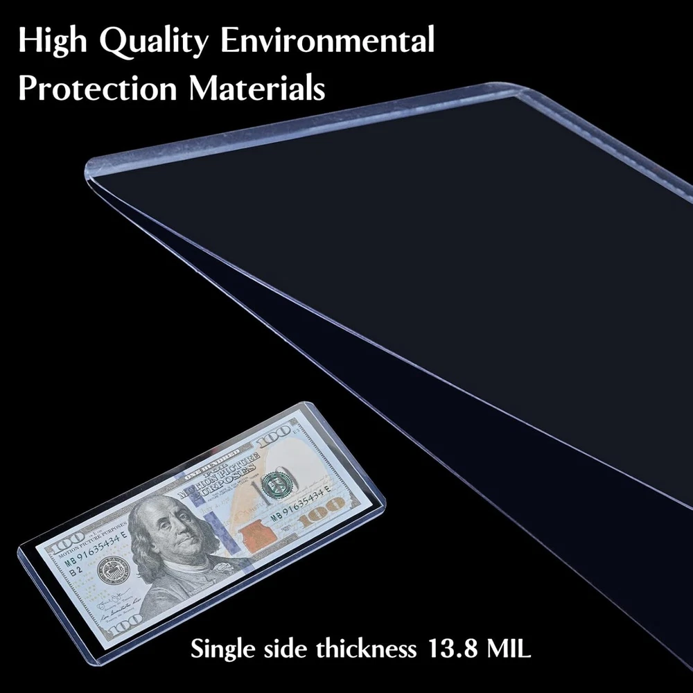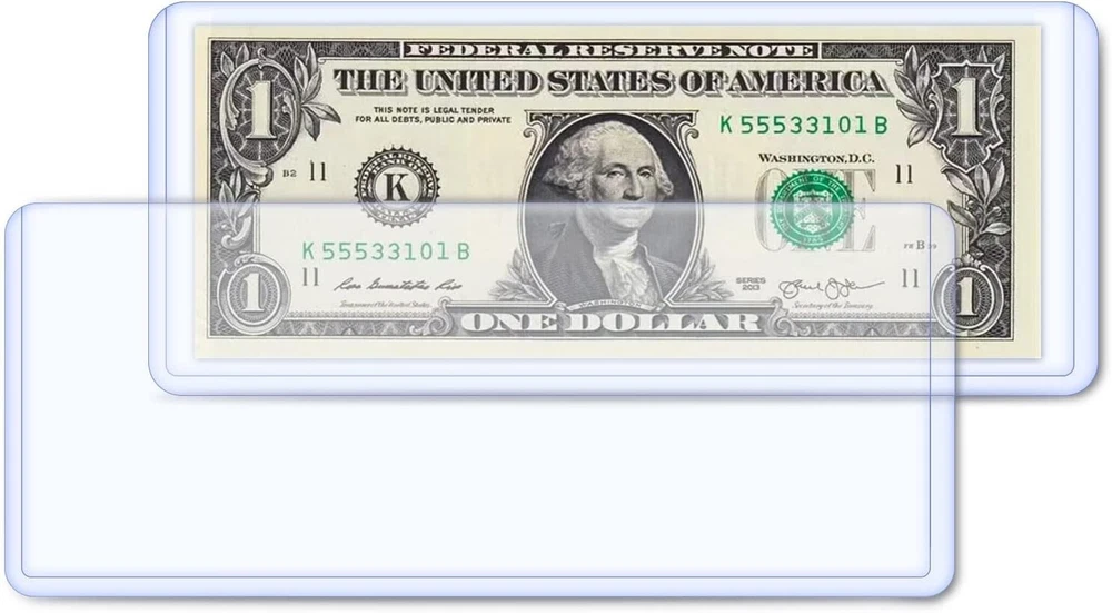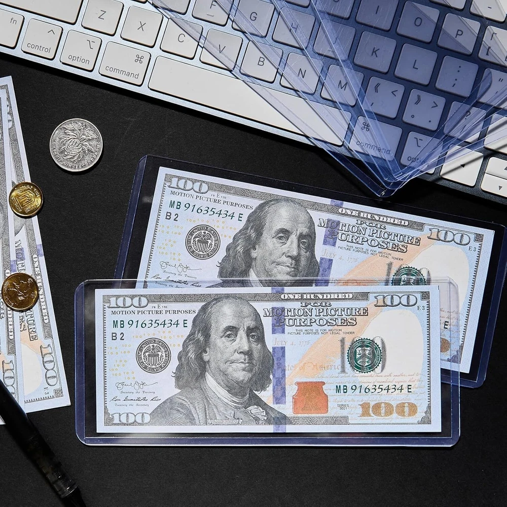 25 Pack Hard Plastic Clear Money Holder Bill Money Top-Load Sleeves Display Sear. About this item: What You Will Get: The package includes 25 pcs dollar bill sleeves, sufficient quantity for your daily use and replacement Proper Size: Each clear dollar bill protector meaures 6.8 x 2.9 inch, suitable for organizing bills, stamps, currency, cards, photos, etc Protect Your Collection: The dollar bill holder can prevent dust, water and breakage, its high transparency also a good way to display your collection Reliable Material: These clear money sleeves are made of high-quality PVC plastic, sturdy and thick, rigid with high transparency and good seams, provides great display, make it easy to view and share banknote Great Present: In addition to satisfying your daily collection needs, these PVC bill holders can also be great presents for friends who have the same collection hobby