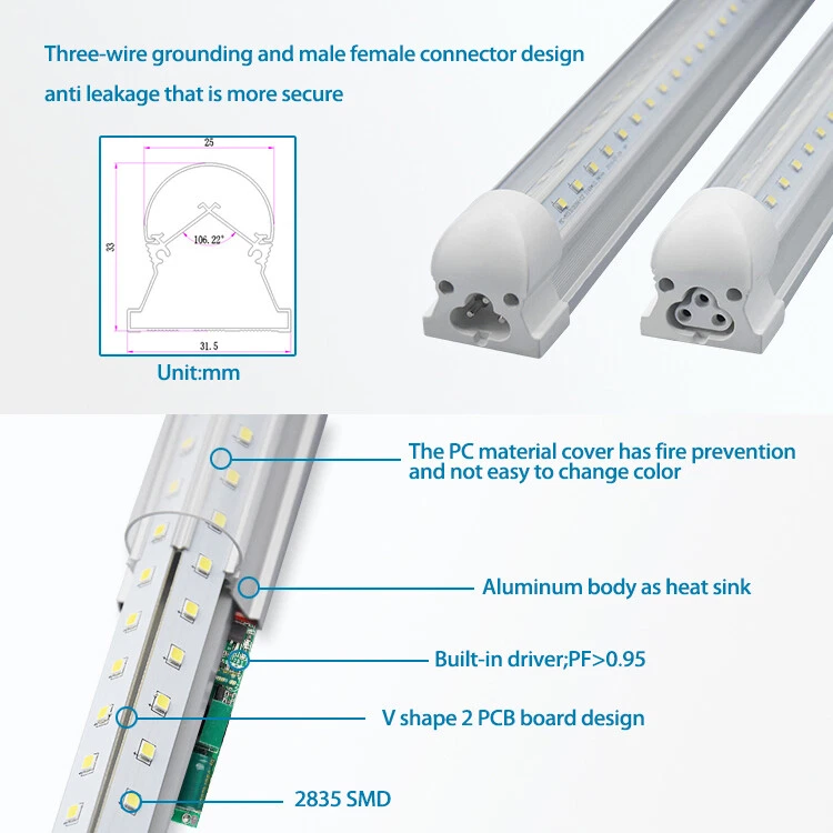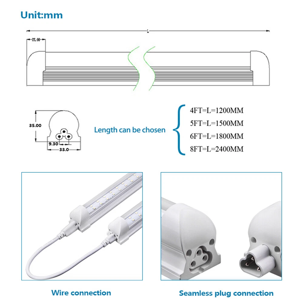 Voltage: 110 V MPN: Does not apply UPC: Does not apply Finish: Clear Material: Aluminum Indoor/Outdoor: Indoor Bulb Life Hours: 50,000hours Features: V Shaped LED Chip Code: SMD2835 Bulb Shape Code: T8 Lumens: 4320lm Country/Region of Manufacture: China Output Voltage: 85-277V Brand: Unbranded Energy Star: A+++ Manufacturer Warranty: 3 Year Warranty Lighting Technology: LED Bulb Wattage: 36W gtin13: Does not apply Type: LED Color Temperature: 6000K EC Range: A+++ - G Bulb Shape: T8 Integrate Tube Light Color: Cool White