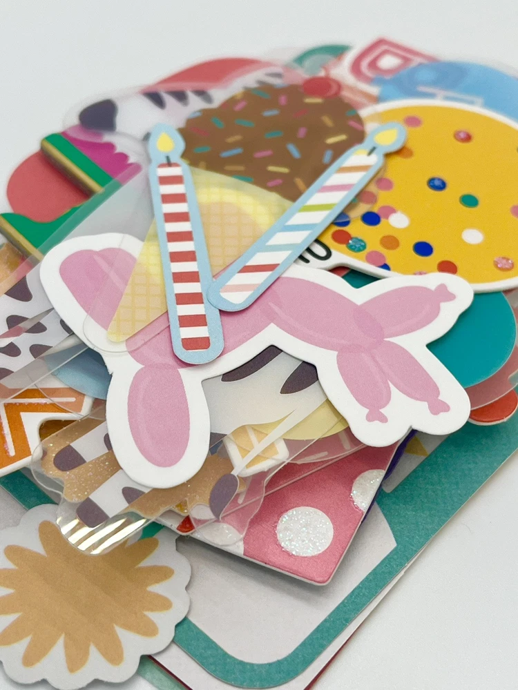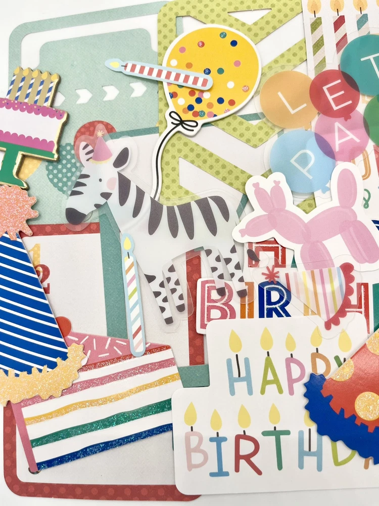A 25 piece mix of paper supplies. Great for card making and scrapbooking. Included in the lots are things like journal cards, chipboard, tags, stickers and more! Thank you!