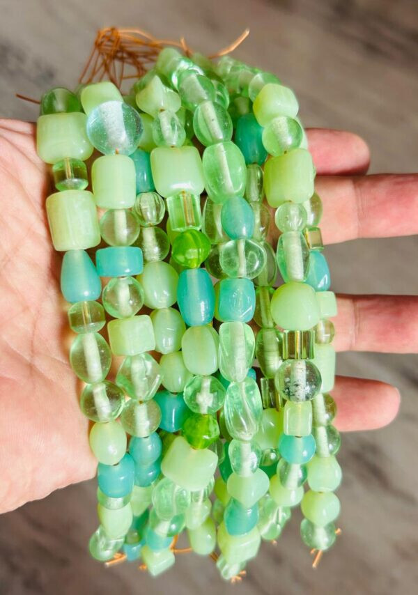 Product Details: Handmade Lamp Work Glass Beads. Multi Shape and Sizes Strand Length: 8 inches Color: Aqua Green Combination Quantity: 25 Strands Condition: New Use: Decoration and Jewelry making like Necklace, Bracelets, Earrings etc. SHIPPING We arrange hassle free shipping and the couriers will give you door delivery. A tracking number will provide immediately after dispatch. CONTACT US For any further information, kindly contact us. We will be happy to assist you. THANK YOU FOR YOUR CO-OPERATION AND SUPPORT