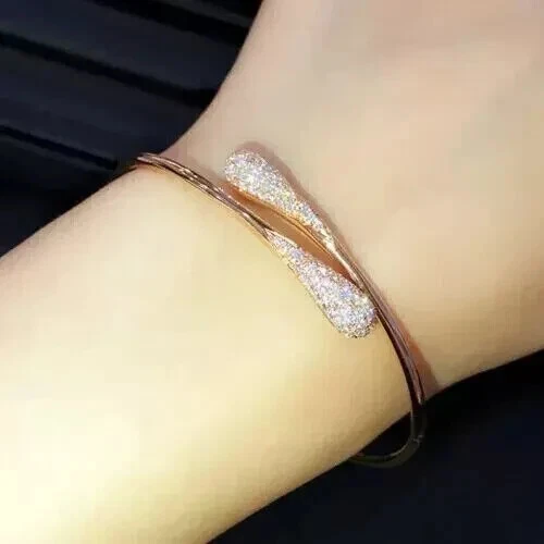 2.50Ct Round Cut Simulated Diamond Women's Bangle Bracelet 14KYellow Gold Plated