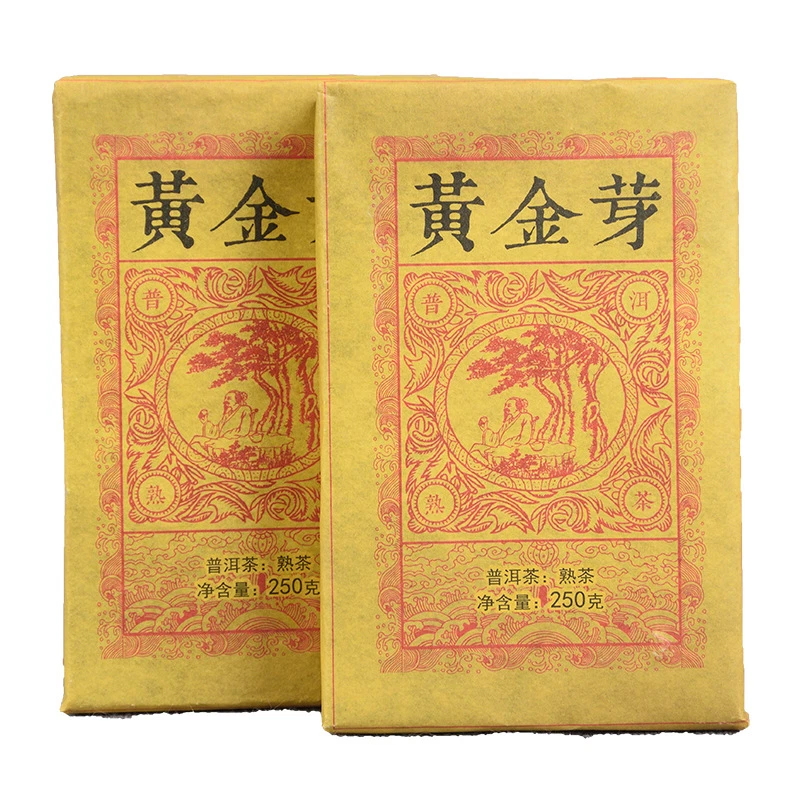 250g Weight Loss Healthy Drink Yunnan Pu'er Tea Ripe Tea Golden Bud Ripe Brick