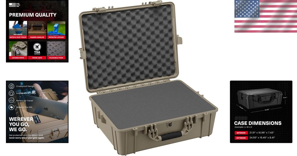 Durable 25" Military-Grade Hard Case with Waterproof Seal & Secure Locks ‹ › ‹ › ‹ › ‹ › ‹ › ‹ › ‹ › ‹ › Durable 25" Military-Grade Hard Case Introducing the ultimate storage solution that combines rugged functionality with security — the 25" Military-Grade Hard Case. Features: Large Portable Storage Case: 25” hard shell carrying case with patented latches and rubberized handles for a comfortable grip. Maximum Security: Lockable design allows you to add your own locks for peace of mind. Waterproof and Dust Proof: With an automatic air pressure release valve, this case is airline friendly. IP67 rated dust and waterproof with a rubber gasket for an airtight seal. Customizable Foam: Pick and pluck foam interior allows you to shape it to fit your items securely, ensuring they stay in place during transport. Stackable Design: Conveniently stackable with steel pin hinges for enhanced strength. Made in the USA: Crafted from crush-resistant, virtually indestructible polypropylene copolymer; constructed in Texas to ensure unparalleled durability. Benefits: Perfect for professionals and adventurers alike, accommodating a variety of equipment securely. Ideal for electronics, music instruments, video equipment, camping supplies, tools, and scientific gear. Travel with confidence knowing your items are protected from the elements and potential damage. Why choose our Durable Hard Case? Elevate your storage game with our 25” Military-Grade Hard Case, engineered for those who demand reliability and security. Whether you're transporting delicate electronics or essential gear for your next expedition, this hard case offers a waterproof, dustproof sanctuary fortified with customization options for a personalized fit. Experience the assurance of American quality and craftsmanship — protect your valuables and travel with confidence. Order your durable hard case today and ensure your gear is safeguarded wherever your journey takes you! Shipping Free & Fast Shipping - We offer free shipping to most of the USA with a normal delivery time of 3-7 days. However, due to the current situation, additional delivery time (up to 3 weeks) may be required for some items. Alternative Carriers - We may use alternative carriers (e.g. USPS, FedEx, UPS, etc.) to ensure your package arrives safely and on time. Due to the use of multiple carriers, we are unable to provide a tracking number automatically. Handling Time - Orders are processed and shipped within 1-2 business days of receiving cleared payment. Shipping Restrictions - Shipping to Alaska, Hawaii, Puerto Rico, Guam, and other US territories may incur shipping charges or delivery restrictions. Please contact us before ordering, or your order can be refunded/cancelled. State Restrictions - There may be restrictions based on your state of purchase. For example, certain items may not be shipped to California due to state regulations. Contact for Tracking Updates - If you require tracking updates or have any concerns about the delivery of your order, please feel free to contact us, and we will be happy to assist you. Return Please see our eBay Return Policy. Thank you. Payment We accept all major credit cards, PayPal, and Apple Pay for your convenience. Your payment information is secure and encrypted to ensure a safe and seamless transaction. Please complete your payment within 3 days of purchase to avoid any delays in shipping. Feedback Your feedback is extremely important to us. We strive to provide the best products and customer service possible. If you are satisfied with your purchase, please take a moment to leave us a positive review. If you have any concerns or issues with your order, please contact us before leaving negative feedback. We are committed to resolving any problems and ensuring your satisfaction. Contact Us If you have any questions or concerns, please feel free to reach out to our customer support team. You can contact us through the eBay messaging system. We are available Monday to Friday, 9:00 am to 5:00 pm EST, and we will do our best to respond to your inquiry within 24 hours. Thank you for supporting our small family business! UPC: Not Set Item Height: Not Set Item Length: Not Set Item Weight: 13 lbs Item Width: Not Set Unit Quantity: 1 Character: Not Set Features: Dustproof,Shockproof,Waterproof,Lockable,Portable,Customizable Foam,Stackable,Airtight Seal,Pressure Release Valve,Weather Resistant,Patented Latches,Rubberized Handles,Steel Pin Hinges Compatible Model: For Electronics,Music Equipment,Video Equipment,Camping Gear,Tools,Scientific Equipment,For Music Equipment,For Video Equipment,For Camping Gear,For Tools,For Scientific Equipment,For Military and Tactical Gear Design/Finish: Rugged,Hard Case,Crush-Resistant,Tan Compatible Brand: Not Set Items Included: Hard Case Character Family: Not Set Theme: Not Set Brand: Unbranded Type: Hard Case Color: Tan Material: Polypropylene Copolymer Wireless Charging Standard: Not Set MPN: Not Set Version: 1 Country/Region of Manufacture: Not Set Manufacturer Warranty: Not Set Unit Type: lb Personalize: Not Set