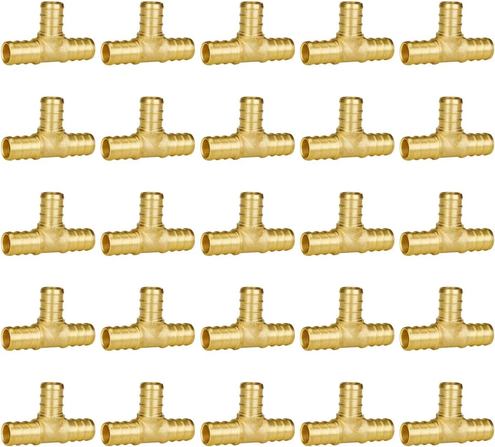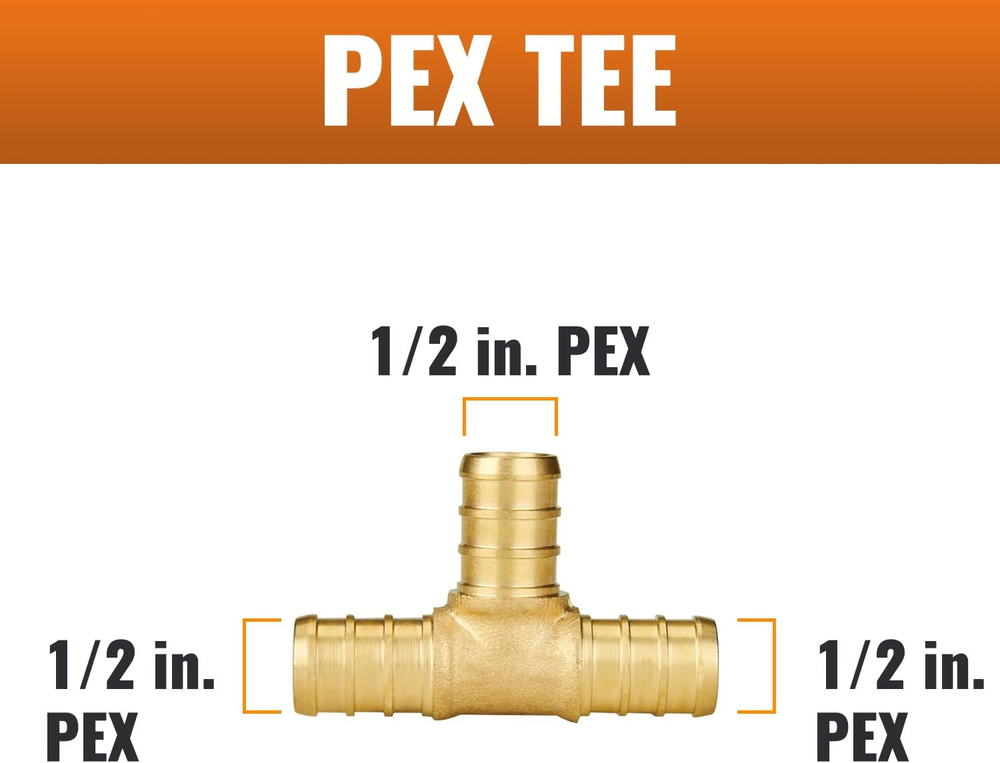 【Package Includes】: Pex Fittings Set includes 25pcs 1/2" PEX Tees 【Non-Pollution】: 1/2" Pex Tee Set is Lead free brass pex fittings, comply with drinking water standard. ASTM F1807 NSF/ANSI 61 Certified. 【Extra-Long Service Life】: High-quality brass pex tee set resists corrosion, rust and high temperature (32℉—200℉). 【Applications】: 1/2" Pex fittings can be used for PEX pipes in plumbing jobs. For Pex Tubing. Great for hot or cold water distribution and and hydronic heating systems in your home, in warehouse or in RV. But NOT UPONOR/Wirsbo EXPANSION SYSTEM & PB TUBE. 【Compatible Products】: 1/2 inch Pex Fittings use with Stainless Steel Clamp Rings or PEX Crimp Copper Rings. (Clamp rings are not included in this set.) 【Warm Tips】: NOT Compatible with UPONOR/Wirsbo EXPANSION SYSTEM & PB TUBE. Product Description SUNGATOR PEX FITTINGS Add to Cart Add to Cart Add to Cart Add to Cart Add to Cart Add to Cart Add to Cart Customer Reviews 4.8 out of 5 stars 2,020 4.8 out of 5 stars 927 4.8 out of 5 stars 2,020 4.8 out of 5 stars 2,020 4.7 out of 5 stars 265 4.7 out of 5 stars 1,005 4.7 out of 5 stars 1,005 Price $31.99 $ 31 . 99 $25.99 $ 25 . 99 $19.99 $ 19 . 99 $29.99 $ 29 . 99 $12.99 $ 12 . 99 $10.99 $ 10 . 99 $25.99 $ 25 . 99 Includes 1/2" PEX Tee 25pcs Elbow x12;Tee x12;Coupling x12 1/2" PEX Coupling 25pcs 1/2" PEX Drop Ear Elbow 12pcs 1/2" PEX Drop Ear Elbow 4pcs 1/2" PEX Female Adapter 6pcs 1/2" PEX Female Adapter 12pcs Size 1/2 inch 1/2 inch 1/2 inch 1/2 inch 1/2 inch 1/2 inch 1/2 inch Applications PEX and PE-RT pipe PEX and PE-RT pipe PEX and PE-RT pipe PEX ,Copper and PE-RT pipe PEX ,Copper and PE-RT pipe PEX ,Copper and PE-RT pipe PEX ,Copper and PE-RT pipe Thread Type PEX PEX PEX PEX to NPT Female PEX to NPT Female PEX to NPT Female PEX to NPT Female Material Brass Brass Brass Brass Brass Brass Brass SUNGATOR 25PCS 1/2 Inch Elbow Pex Fittings Pex Shower Head Fitting Pex to Garden Hose Pex Valve In Kitchen Full-port for control and shut off water flow to fixtures or appliances for maintenance and repair. Pex Ball Valve Create ManiFolds to keep all your shut off valves in one location. 1 INDOOR DROP EAR ELBOW 2 OUTDOOR DROP EAR ELBOW 3 SHUT OFF VALVE 4 IN MANIFOLD Connection Steps 1. Cut the pex tubing. 2. Slip the clamp. 3. Cinch the ring. 4. Done.
