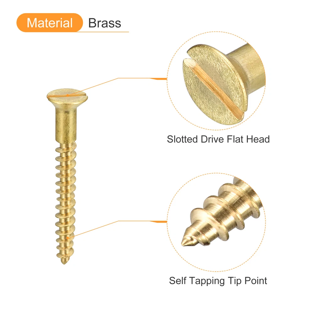 Document Description:Material - These wood screws are made of brass for high strength, wear resistance, corrosion resistance, long-lasting durability and dependability.Countersunk Head Design - Flat head screws can keep the surface flat after installation. Self-tapping screws can be installed without drilling, but pre-drilled holes can better maintain the integrity of the mounting surface.Features - Screws play a role in connecting two or more objects and are an essential necessity in daily life or industrial manufacturing. A flat-head screw is commonly used when the protrusion of the fastener above the mating surface is not acceptable. Clear thread, uniform tooth pitch, and good fastening effect.Wide Applications - Widely used in woodworking, furniture, home, industry, gardening, indoor decorations, or any other DIY crafts for installation, repair, and fixing. Such as thin metal parts, wood fences, cabinets, wardrobes, closets, boxes, wooden walls, and fixing hinges, latches, hasp, etc. into wooden surfaces. Especially suitable for indoor drying places.Notice - Please wear gloves to protect your hands when working and install the screws at a vertical angle of 90 degrees on the working surface to prevent tilt, which will affect the use effect.Specification:Material: BrassThread Dia: M4Total Length: 35mm/1.38-inchHead Dia: 7.2mm/0.28-inchHead Type: FlatScrew Drive Type: SlottedPackage Content:25 Pcs x Wood Screws 25Pcs M4 x 35mm Brass Slotted Drive Flat Head Wood Screws Self Tapping Screw Description: Material - These wood screws are made of brass for high strength, wear resistance, corrosion resistance, long-lasting durability and dependability. Countersunk Head Design - Flat head screws can keep the surface flat after installation. Self-tapping screws can be installed without drilling, but pre-drilled holes can better maintain the integrity of the mounting surface. Features - Screws play a role in connecting two or more objects and are an essential necessity in daily life or industrial manufacturing. A flat-head screw is commonly used when the protrusion of the fastener above the mating surface is not acceptable. Clear thread, uniform tooth pitch, and good fastening effect. Wide Applications - Widely used in woodworking, furniture, home, industry, gardening, indoor decorations, or any other DIY crafts for installation, repair, and fixing. Such as thin metal parts, wood fences, cabinets, wardrobes, closets, boxes, wooden walls, and fixing hinges, latches, hasp, etc. into wooden surfaces. Especially suitable for indoor drying places. Notice - Please wear gloves to protect your hands when working and install the screws at a vertical angle of 90 degrees on the working surface to prevent tilt, which will affect the use effect. Specification: Material: Brass Thread Dia: M4 Total Length: 35mm/1.38-inch Head Dia: 7.2mm/0.28-inch Head Type: Flat Screw Drive Type: Slotted Package Content: 25 Pcs x Wood Screws Hot Item Payment 1.We accept eBay payment . 2.Payment must be received within 7 business days of auction closing. Shipping 1.We ship to your eBay or Paypal address. Please make sure your eBay and Paypal address is correct before you pay. 2.Items will be shipped within 1-3 business day when we received payment. 3.Delivery time depends on destination and other factors. Description Policy 25Pcs M4 x 35mm Brass Slotted Drive Flat Head Wood Screws Self Tapping Screw Description: Material - These wood screws are made of brass for high strength, wear resistance, corrosion resistance, long-lasting durability and dependability. Countersunk Head Design - Flat head screws can keep the surface flat after installation. Self-tapping screws can be installed without drilling, but pre-drilled holes can better maintain the integrity of the mounting surface. Features - Screws play a role in connecting two or more objects and are an essential necessity in daily life or industrial manufacturing. A flat-head screw is commonly used when the protrusion of the fastener above the mating surface is not acceptable. Clear thread, uniform tooth pitch, and good fastening effect. Wide Applications - Widely used in woodworking, furniture, home, industry, gardening, indoor decorations, or any other DIY crafts for installation, repair, and fixing. Such as thin metal parts, wood fences, cabinets, wardrobes, closets, boxes, wooden walls, and fixing hinges, latches, hasp, etc. into wooden surfaces. Especially suitable for indoor drying places. Notice - Please wear gloves to protect your hands when working and install the screws at a vertical angle of 90 degrees on the working surface to prevent tilt, which will affect the use effect. Specification: Material: Brass Thread Dia: M4 Total Length: 35mm/1.38-inch Head Dia: 7.2mm/0.28-inch Head Type: Flat Screw Drive Type: Slotted Package Content: 25 Pcs x Wood Screws Hot Item Payment 1.We accept eBay payment . 2.Payment must be received within 7 business days of auction closing. Shipping 1.We ship to your eBay or Paypal address. Please make sure your eBay and Paypal address is correct before you pay. 2.Items will be shipped within 1-3 business day when we received payment. 3.Delivery time depends on destination and other factors.