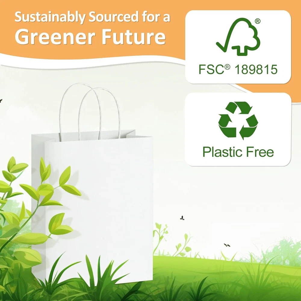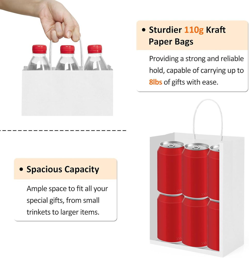 Store New Arrivals Add to Favorite View Feedback Contact Fast deliveries to the customer's home Quality customer service John Make the customers happy! 25Pcs White Gift Bags 8X4.25X10.5 Kraft Paper for Gifts, Shopping Retail Merchandise Grocery Sacks, White Paper Bags with Handles Bulk Medium Description Recyclable Kraft Paper Eco-friendly Paper Bags: These white gift bags are made of 100% Recyclable Paper. FSC COMPLIANT. BagDream kraft paper bags are RECYCLABLE, no peculiar smell and look a lot classier than those white plastic ones as gifts bags. Premium Kraft Paper Bags: Holding up to 8lbs, these sturdy gift bags are made of 110g basis weight kraft paper and have well constructed paper twist handles. No stray glue any where like other gift bags do and the flat solid bottom making it stand easily Paper Gift Bags DIY Ideas: The white kraft bags are blank, you could decorate them with drawing, coloring and etc for different holidays as gift bags to your special ones. As retail paper bags, you could staple your business card or stamp with logo on 8x4.25x10.5" Multipurpose Gift Bags: These plain white gift bags are a wonderful medium size for any number of things. BagDream craft paper bags are good for holiday gift bags, shopping bags, retail merchandise bags and wedding welcome party favor bags Shopping Worry-free: We never want to make our valued customers disappointed. If there's any reasons you’re not happy with our gift bags, just email us and we’ll fix it up asap. Please keep the paper bags to avoid the hassle of shipping them back. Product description BagDream 8X4.25X10.5" Valentine's Day White Gift Bags 25PCS (Medium) Dust-Free Production Crafted in a specialized dust-free workshop, ensuring the highest quality for every paper bag. Load-Bearing Strength Each batch undergoes rigorous load-bearing tests, guaranteeing reliable performance with every use. Precision Craftsmanship Featuring imported adhesive on the bottom and handles, our paper bags are engineered for exceptional durability and strength. Various Colors in 8X4.25X10.5" Find the ideal gift bags to match your needs, available in multiple colors for any occasion. Item model number BD011 Unit Count 25.0 Count Number of Items 25 Color White Pattern Solid Product Dimensions 8"L x 4.25"W x 10.5"H Material Paper Theme Gift bags medium size Occasion Baby Shower, Christmas, Thanksgiving, Valentine's Day, Wedding Is Discontinued By Manufacturer No Size 1 count (Pack of 25) ABOUT US We offer the best prices around on high quality products. Our E-store includes media such as books, movies, music and games while offering electronics, toys, sporting apparel, clothing, tools, general home, garden items and more. SHIPPING We are always working hard to ensure your package arrives as soon as possible. Please understand that some factors like weather, high postal traffic, and the performance of shipping companies are outside of our control. We offer free shipping to the lower 48 states and ship within 2 business days of payment, usually sooner. We do not accept P.O. Boxes. Please provide a physical address. For shipping outside of the continental USA, we only use eBay's Global Shipping Program. The item is shipped to KY and then sent to the rest of the world. International customers are responsible for all duties and taxes. Continue to 'check out' to calculate costs for shipping the item to your country. Messages regarding eBay's Global Shipping Program MUST be directed at eBay EXCLUSIVELY. RETURNS We offer a 30-Day Return Policy on items in which you are not completely satisfied with. You have the option of a full-refund or an exchange of the item. No returns are available on items shipped outside of the USA PAYMENT We accept PayPal. CONTACT US This page content is yet to come Please ad us to your favorite seller and visit again later Thank You CUSTOMER SATISFACTION We try our very best to make sure every customer is completely satisfied. If there's a problem, message us! We're happy to help. WE ACCEPT