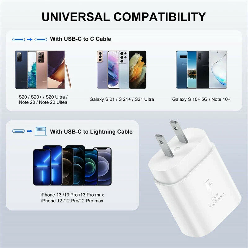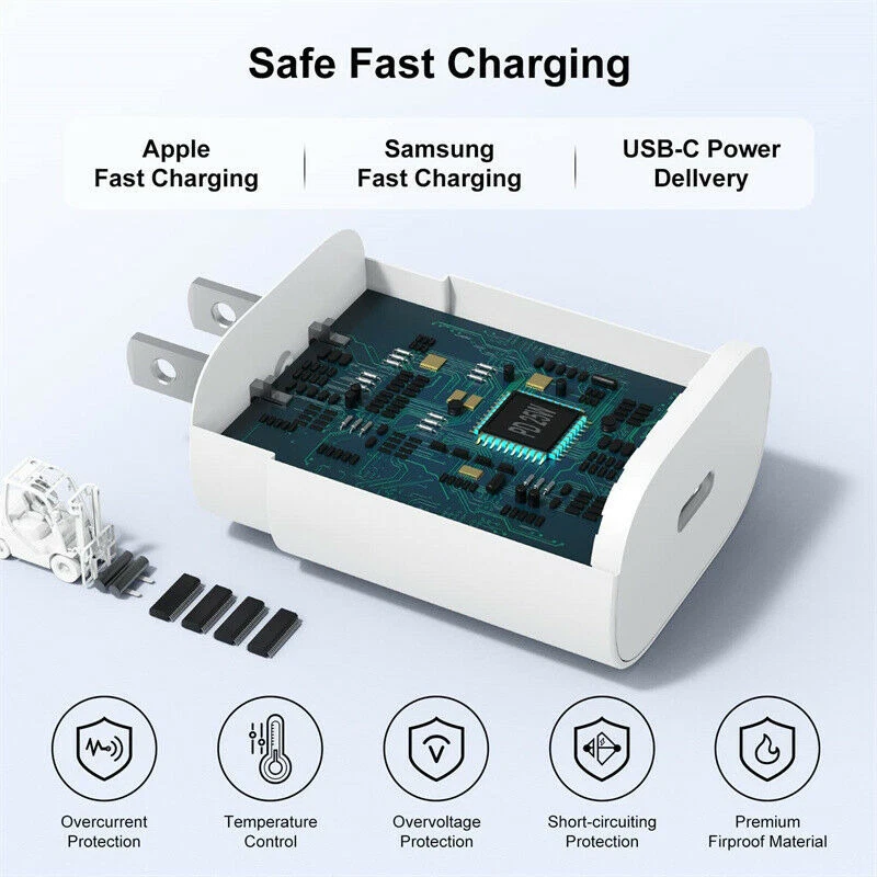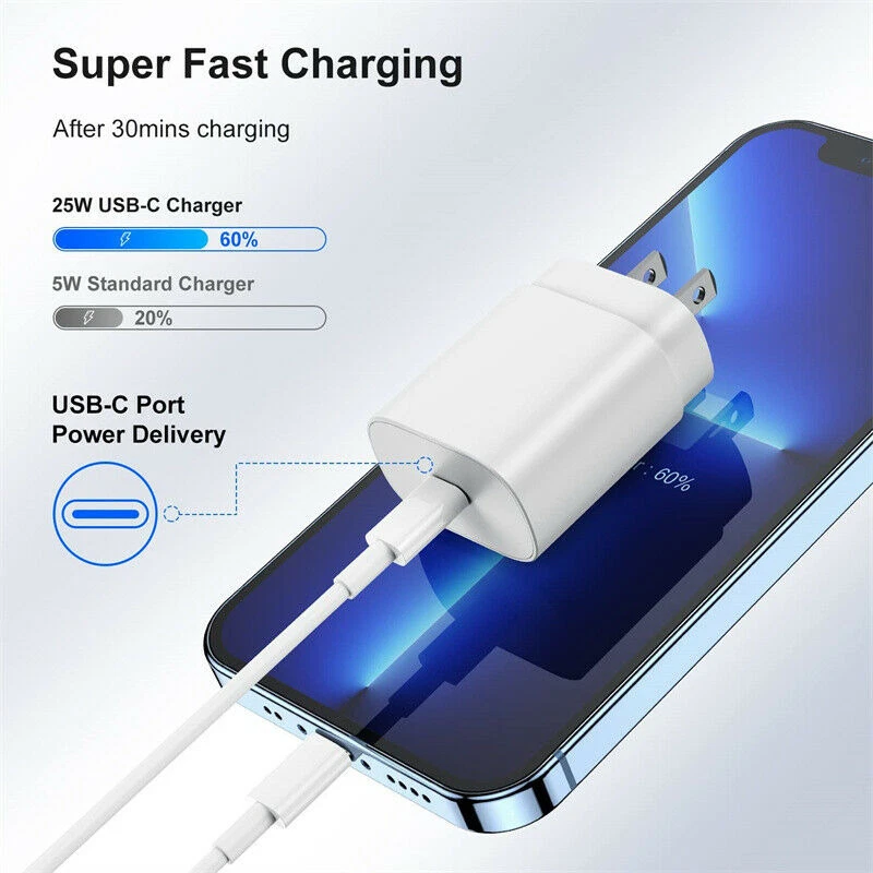 Specification : - Type: 25W PD3.0 fast charge charger - Input voltage: AC 100-240V 50-60Hz - Output power: 25W - Work efficiency: 85% - Working temperature: 0-50℃ - Output voltage: PDO 9V, PPS 3.3-5.9V or 3.3-11.0V - Output current: PDO 2.77A(9V) , PPS 3.0A(3.3-5.9V) or 2.25A(3.3-11.0V) - Output protection: short circuit protection, overvoltage protection, overcharge protection, overheat protection - Applicable products: smart phones, tablet computers, digital electronics and other equipment. Features: 100% Brand New and High Quality! UPDATED FAST CHARGER: # 25W PD3.0: Equipped with USB-C PD 3.0 charging port, Supports 25W output. SAFE AND RELIABLE : Overcharge Protection,Over-voltage,Over-temperature,Short Circuit,Over-current,Over-voltage Protection. Smart IC Chip automatically detects and delivers the optimal charging power for connected devices, to guarantee fast charging. GREAT COMPATIBILITY : Compatible with all USB C powered devices such as MacBook/Pro/Air/iPad Pro 2018, And iPhone 12 Mini,12,12 Pro,12 Pro Max,Xs, Xs Max, XR, X, 8, 7, 6 Plus cables.