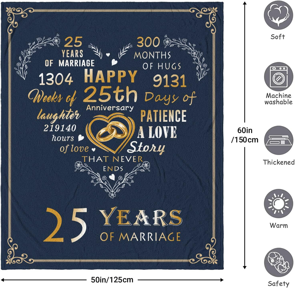 25th Anniversary Blanket - Silver Wedding Gift for Couple, Parents (50”x60”)
