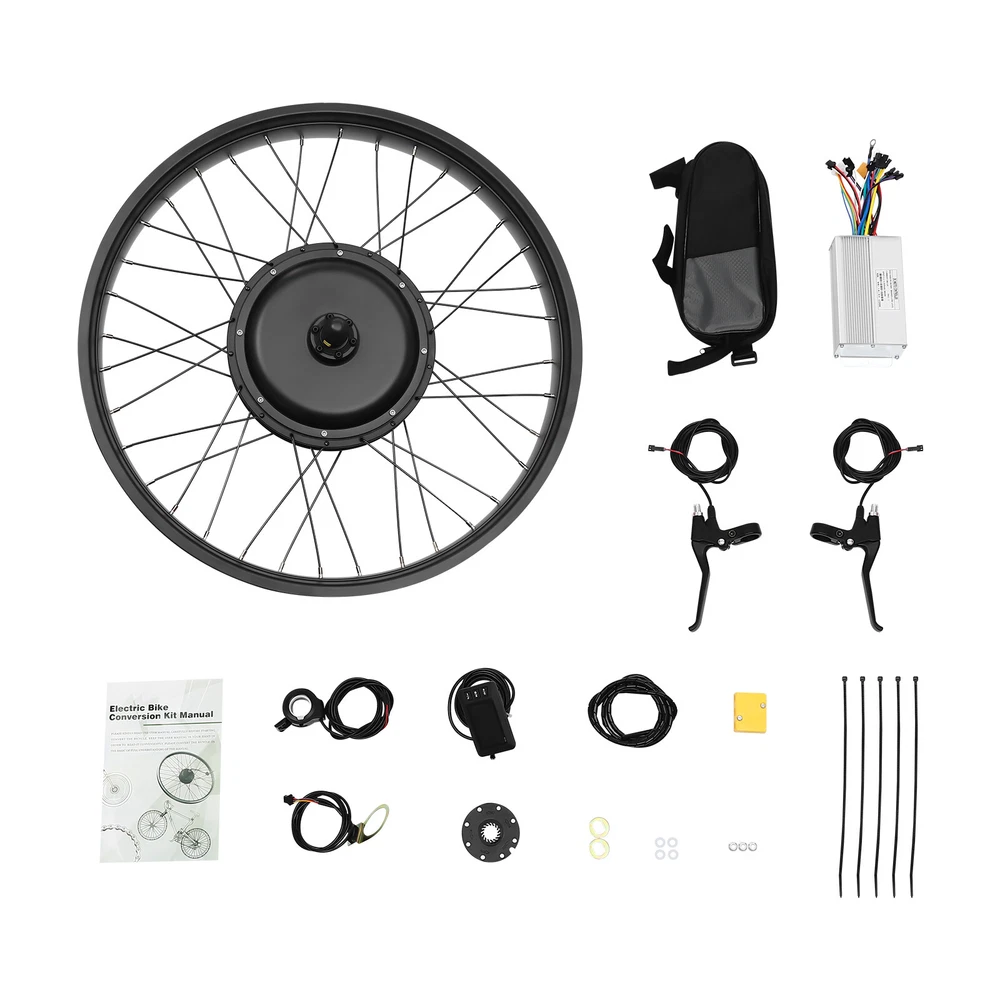 26" 48V E-Bike Conversion Kit Fat Front Wheel Electric Bicycle Hub Motor Kit 1kW 26 inch E-Bike Conversion Kit, Front Wheel Electric Bicycle Hub Motor Kit, Electric Bike Conversion Kit 1000W 48V with Pedal Assist Sensor (PAS) Ebike Umrüstsatz, Vorderrad Elektrofahrrad Nabenmotor Kit, Elektrofahrrad Umrüstsatz Description Do you still think riding in poor conditions can be difficult? Let us make your ride easier. Our e-bike conversion kit is an upgrade solution for cyclists who want extreme performance and a personalized experience. Not only will it dramatically improve the electric power performance of your existing bike, but it will also take your riding experience to a whole new level, making both urban commuting and mountain adventures easier and more enjoyable. Key Features Complete Kit: This kit contains almost all the parts you need to modify your bike without the need to purchase them separately. Matching kits will provide you with more stable and consistent performance. Strong Power: Equipped with a 1000W high-efficiency DC brushless motor, it instantly explodes with powerful power to easily cope with the challenges of steep slopes. It can reach a maximum speed of 26.1-31.07 mile/h , reducing travel time and allowing you to experience speed and excitement. Front-wheel Drive Design: The front-wheel drive design provides direct power transmission, reduces energy loss, and improves the vehicle's maneuvering flexibility and responsiveness, allowing for a better driving experience whether you're taking a sharp turn or climbing a hill. High Safety: Motor overheat protection and IP54 waterproof grade can effectively extend the service life of the equipment and improve the safety of using and driving. Easy Assembly: The kit has a compact design and is compatible with most 26in bicycle front wheel sizes on the market. The installation process is quick and easy without complicated tools, even inexperienced users can easily complete the transformation. Thoughtful Design: The pedal assist sensor (PAS) allows you to ride your e-bike without throttle response, ensuring that you can operate your e-bike in two ways. To avoid uncomfortable wrist positions, you just need to pedal whenever and wherever you want. Ideal Gift: With its good performance, you can give it as a gift to your family or friends who love to ride, so that they can enjoy the fun of riding. Good Customer Service: We aim to provide quality products and services. If you have problems, please feel free to contact us. We will reply and solve the problem for you as soon as possible. Details LCD Display: It can display the basic information, such as battery indicator, speed, single mileage, total mileage, speed gear, PAS gear, brake signal, cruise function, 6KM/H boost function, and error code. It helps you to know the riding status at any time. Thumb Throttle: You can easily adjust the motor boost level and precisely control the magnitude of acceleration by simply pressing your thumb, thus increasing the safety and convenience of control while riding. Application This product is suitable for snowmobile and bicycle conversions with a wheel size of 26inch. Specification Material: Iron, Aluminum Color: Black Process: Baking Assembly Required: Yes Motor Type: Brushless Gearless Motor Hall Sensor/Temperature Sensor: Yes Brakes: Low Level Brake: Disc Brake PAS: 1:1 Speet: 1.1-4.2VDUAL Mode Voltage: DC 48V Power: 1000W Current: 30±1A Adaptable Wheel Size: 66.04cm/26in Wheelbase: 10mm*14mm/0.39in*0.55in Magnet Height: 30mm/1.18in Winding: 11*5 Waterproof Grade: IP54 Speed: 520rpm Max. Speed: 42-50km/ 26.1-31.07 mile/h Cable Size: 2mm² Maximum Torque: 40N.m Gear Opening: 135mm/5.31in Package Size: 50*50*26cm/19.69*19.69*10.24in Gross Weight: 14kg/30.86lbs Net Weight: 13kg/28.66lbs Package Included 1* Motor Wheel 1* Controller 1* Brake Lever Set 1* Thumb Grip 1* LCD Display 1 Set* Pedal Assist Sensor 1* English Manual Other Accessories for Assembly Notes Please read the operating manual completely before use. And pay particular attention to the safety instructions included. Please note that the mileage mainly depends on the capacity of the battery, our products are not equipped with battery. Payment Delivery details Terms of sales About us Contact us Payment We accept ebay payment 。 Fees such as import duties, taxes are not included in the item price or shipping costs. These charges are the buyer's responsibility. Delivery details Shipping: 2-9 working days to: USA Terms of sales We maintain high standards of excellence and strive for hundred percent customer satisfaction. Feedback is very important to us. We hope that you contact us immediately before you give neutral or negative feedback, so that we can address your concerns. It is impossible to address issues if we do not know about them! About us Your satis faction is our ultimate goal. We work hard to earn your trust and future business. Our certified technicians have tested each item before shipping. The unit comes with 1 year limited warranty on all manufacturing defects. a) If you receive a defective item, you may return it or ask for a discount. Please contact us within 14 days after you receive the package. b) What you returned must be intact and in its original packaging as re? u. Customer is responsible for shipping costs of the returned item. c) We will cover the cost of shipping back t with the shipping rate indicated in the registration page. We will send you a new unit or refund the full payment you paid. Thank you. Contact us Business Hour Business Hour: Monday To Friday: 8:30 AM to 5:00 PM (Beijing China time) Due to time zones, our reply to your questions may not be immediately. But within above working time, we will reply your email within 24 hours. If it's non-workdays, please kindly be patient and wait till Monday. Please contact us with ebay message. Please feel free to contact us if you have any questions. Monday To Friday: 8:30 AM to 5:00 PM (Beijing China time) 
