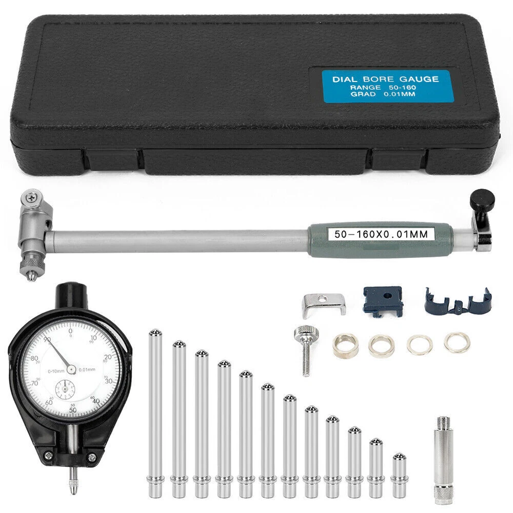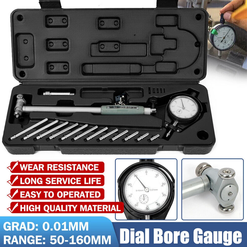 Product Description Tips: We regularly send out offers every month, just click the link to bookmark this article. As long as you bookmark the link, there is a chance to get a discount. Package: 1 Set Dial Bore Gauge Description: For Measuring Different Diameters - Range 50MM(1.97") to 160MM(6.23") diameter, Measures bore to 150mm (5.9") deep, Accuracy 0.01MM(0.0003") Super Precision Deep Measuring Bore Gauge - Two-point contact is used to detect geometric diameter measurement problems such as ovality and taper Self Centering - The easily adjustable bore gauge is self-centering for fast, accurate measurements Professional Quality - Self-centering measuring extended heads, chrome plated handle and good quality ABS storage case Use After Zero Setting - Before measuring, be sure to adjust the pointer of the dial indicator to the “0” setting and select the measuring head of the appropriate size for measurement Features: 12-Piece changeable probe set Internal diameter cylinders measurement Self-centring with a guide bridge Accurate and reliable Interchangeable probe depending on aperture size Ergonomic insulated handle Extension bar 15cm Measuring rod Protective shell Measuring range 50-160mm 0.01mm Accuracy Specifications: Color: Black Materials: Steel Range: 50-160mm Accuracy: 0.01mm We will re-check the quality before delivery. If any issues, questions or concerns,please feel free to email us at the first time, customer support team is standing by to assist you. Payment Shipping Returns Contact Us We accept payment PayPal. If you don't have PayPalaccount, you can sign up and learn more about PayPal at www.paypal.com. It is a fast and safe Trading Way on Internet. Payment should be fulfilled within 5 days since auction's ending.All unpaid bidders will result in a non-payment buyer alert from eBay. If you want to cancel the order or want to pay later, please notice us as early as possible, then we can follow the case specially. International Buyers - Please Note: Import duties, taxes and charges are not included in the item price or shipping charges. These charges are the buyer's responsibility. 1. Items are generally shipped out within 24 hours after your payment has been cleared (Sat. & Sun. excluded.) 2. Domestic Shipping This item is located in American warehouse and most of purchases will be sent out in 24 hours after payment except weekend and holiday. We only could ship to the address that's stated on your ebay account.So please update your shipping address on ebay account before making a payment. Usually the domestic shipping time is 1-5 business days by standared shipping method. 3. All items will be shipped to buyer's paypal address. Please check your paypal address before place the order. 4. We are not responsible for wrong or undeliverable address. We reserve the right to charge the shipping fee again for returned items due to wrong address. Return accepted. 30 Days, money back or replacement. If there is Transport damage, please contact us first. We can resolve the problem. But if you want to send the item back, here are some tips: Return items must not be used or have any sign of abuse or intentional damage. The shipping fee of the returned item is by the buyer. We reserve the right not to refund S&H when the item has been posted and we get no returned item. eBay Message is perfect ,we will reply you in 1 business days (not include Saturday and Sunday) Please contact me first before you leave Neutral or Negative feedback. We will do out best to make you satisfied! If you have any questions, please don't hesitate to contact us,we will reply ASAP. Payment We accept payment PayPal. If you don't have PayPalaccount, you can sign up and learn more about PayPal at www.paypal.com. It is a fast and safe Trading Way on Internet. Payment should be fulfilled within 5 days since auction's ending.All unpaid bidders will result in a non-payment buyer alert from eBay. If you want to cancel the order or want to pay later, please notice us as early as possible, then we can follow the case specially. International Buyers - Please Note: Import duties, taxes and charges are not included in the item price or shipping charges. These charges are the buyer's responsibility. Shipping 1. Items are generally shipped out within 24 hours after your payment has been cleared (Sat. & Sun. excluded.) 2. Domestic Shipping This item is located in American warehouse and most of purchases will be sent out in 24 hours after payment except weekend and holiday. We only could ship to the address that's stated on your ebay account.So please update your shipping address on ebay account before making a payment. Usually the domestic shipping time is 1-5 business days by standared shipping method. 3. All items will be shipped to buyer's paypal address. Please check your paypal address before place the order. 4. We are not responsible for wrong or undeliverable address. We reserve the right to charge the shipping fee again for returned items due to wrong address. Returns Return accepted. 30 Days, money back or replacement. If there is Transport damage, please contact us first. We can resolve the problem. But if you want to send the item back, here are some tips: Return items must not be used or have any sign of abuse or intentional damage. The shipping fee of the returned item is by the buyer. We reserve the right not to refund S&H when the item has been posted and we get no returned item. Contact Us eBay Message is perfect ,we will reply you in 1 business days (not include Saturday and Sunday) Please contact me first before you leave Neutral or Negative feedback. We will do out best to make you satisfied! If you have any questions, please don't hesitate to contact us,we will reply ASAP. powered by