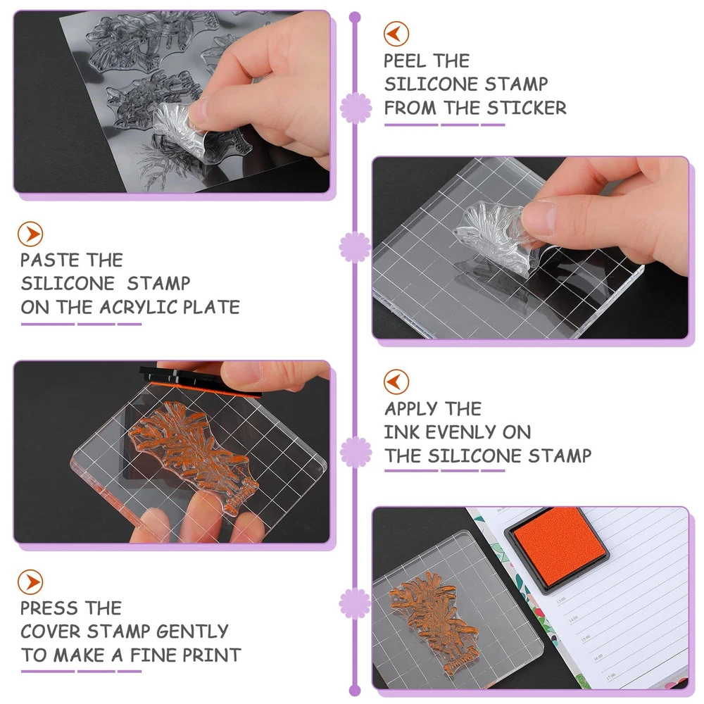 26 Pieces Acrylic Stamp Blocks Tools Set Including 8 Plants and Flower Silico...