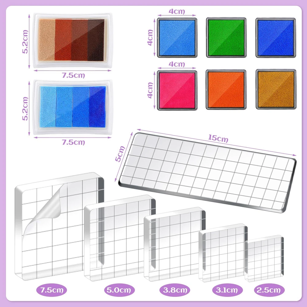 Features: Adorable DIY present supplies: Our floral ink stamps, acrylic blocks and ink pads are ideal for you to send to your family members, friends, colleagues and more who love DIY, on Christmas, Halloween, Valentine's Day and other festivals. They will feel your concern and love, and your relationship will be improved. Easy to clean: These acrylic blocks are washable, you can conveniently and quickly wash them just with clean water after you wear them. It's effective for you to use, saving time and effort and keeping you feeling nice. Specifications: Material: Plants and flower silicone clear stamps seal: silicone Stamp blocks: acrylic Color: as pictures shown Size: Stamp blocks: approx. 7.5 x 7.5 cm/ 2.95 x 2.95 inches, 5 x 5 cm/ 1.97 x 1.97 inches, 3.8 x 3.8 cm/ 1.5 x 1.5 inches, 3.1 x 3.1 cm/ 1.22 x 1.22 inches, 2.5 x 2.5 cm/ 0.98 x 0.98 inch, 15 x 5 cm/ 5.91 x 1.97 inches Craft ink pads: approx. 7.5 x 5.2 cm/ 2.95 x 2.05 inches Quantity: 26 pieces Package includes: 8 x Plants and flower silicone clear stamps seal 6 x Stamp blocks 12 x Craft ink pads Notes: Manual measurement, please allow slight errors on size. The color may exist a slight difference due to different screen displays. Vivid Plant and Flower Themes: our decorative clear stamps are designed in main vintage plant themes, available with diverse patterns, such as various flowers, leaves, sprinkling cans and more, charming and lifelike, bringing you a nice and different experience Extensive Applicable Occasions: these silicone stamps, acrylic blocks and ink pads are not only practical for card making, scrapbooking and journaling, but also suitable for making invitations, DIY albums, book marks, present tags and a variety of other DIY crafts Proper Dimension to Apply: there are 6 different sizes of these clear acrylic blocks for stamping with grid lines, including about 7.5 x 7.5 cm/ 2.95 x 2.95 inches, 5 x 5 cm/ 1.97 x 1.97 inches, 3.8 x 3.8 cm/ 1.5 x 1.5 inches, 3.1 x 3.1 cm/ 1.22 x 1.22 inches, 2.5 x 2.5 cm/ 0.98 x 0.98 inch and 15 x 5 cm/ 5.91 x 1.97 inches, and the ink pad is about 7.5 x 5.2 cm/ 2.95 x 2.05 inches, appropriate for you to use Pretty Combination to Meet Your Needs: you will receive 8 pieces of ink stamps for card making in different styles, 6 pieces of acrylic blocks in various sizes and 12 pieces of ink pads in different colors; The quantity is sufficient for you to use and replace, and can easily meet your daily use and other requirements Serviceable and Lasting: each clear stamp is made of quality silicone, each clear stamp block is made of quality acrylic, reliable and sustained, not easy to deform or break, and can be kept for a long time; The surfaces of these blocks are smooth and comfortable to touch, so you do not need to worry about scratching your fingers