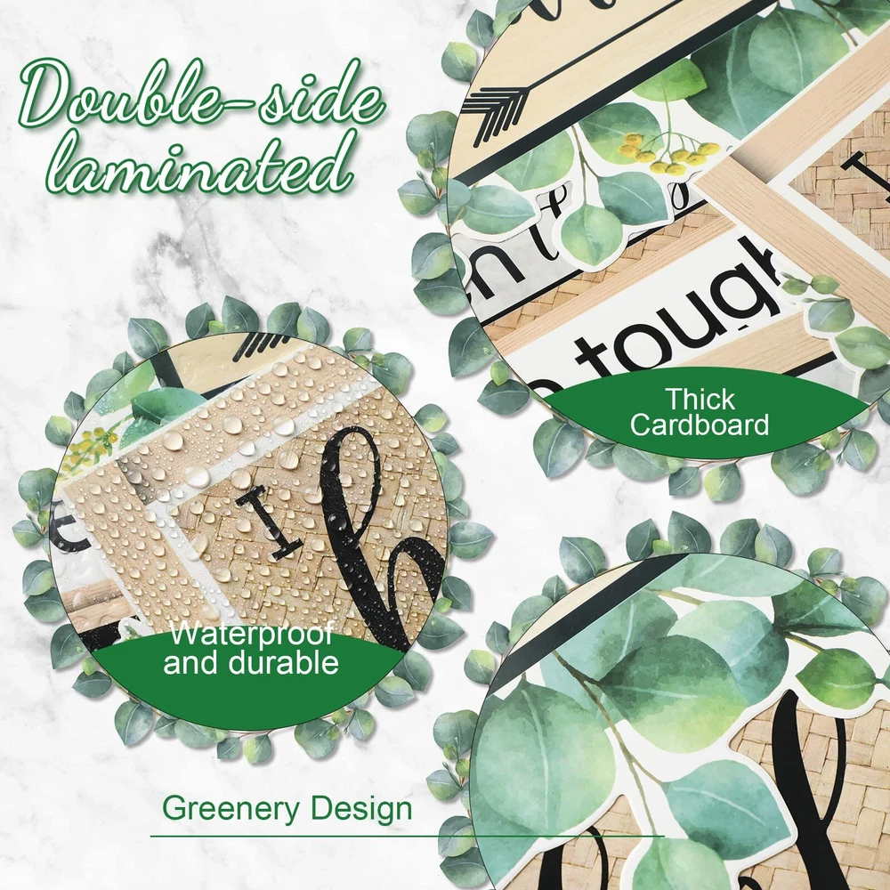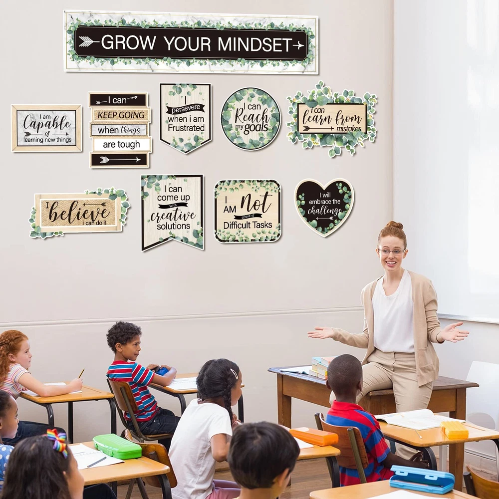 Feature:Interesting and eye catching:The grow your mindset mini bulletin boards are designed with colorful words and pictures, come with eucalyptus adorable design, very interesting and bright, the text can help to enhance the learning experience.Wide applications:These positive wall art prints are suitable for wall decorations, party pendants and photo props, pasting to anywhere you like to decorate your room, bring color and life into your room.Specifications:Material: 250 gsm cardstockSize: as pictures shownPackage includes :4 x Adhesive dots26 x Growth mindset postersWarm notes:Please allow slight size errors due to manual measurement.The colors may be slightly different from pictures due to different screens. Package Includes: 26 pieces different growth mindset posters with 4 pieces glue points dots, includes 'GROW YOUR MINDSET'; The growth mindset poster for classroom is a great way to remind them to put mindsets in check every once in a while Eucalyptus Style Design: these motivational bulletin board sets decorations are designed with eucalyptus, colorful and very novel, these pictures help children increase their curiosity about the world and stimulate positive attitude, appearance and creative imagination Help Foster A Growth Mindset: these classroom posters contain 17 positive attitudes, can be the uplifting teacher remember for the whole life, positive growth mindset posters inspire little minds to dream big, give your little learners the encouragement, they need and set them up for life success Quality and Suitable Size: these positive posters for classroom are made of 250 gsm cardstock, covered with quality PET film for added waterproof, tear resistant and reusable. the bulletin board's maximum size is 13.4 inch, minimum size is 10.2 inch, suitable size of motivational posters decorations are nice for preschool, elementary, middle and high school Easy Way to Mount: the elementary classroom poster pack has no sticky, extra glue point dots are offered which comes with package, so you can easily apply these positive accents on the wall; When you have to move something, it's able to gently pull it off of the wall without messing up wall paint or poster