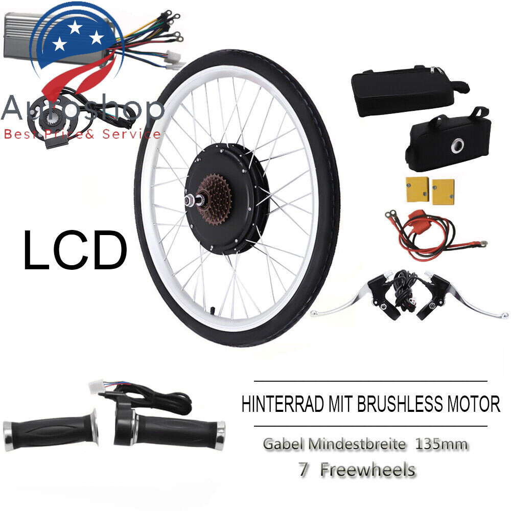 26" Electric Bicycle Conversion Kit Rear Wheel LCD E-Bike Hub Motor 48V 1000W Note: while connecting the controller to the wires, please make sure that you connect the right colors to the controller. Otherwise, the controller may be broken. Note:Please do not install other seller's accessories into our suits. If it does not match, it will easily damage the machine. If you want to buy accessories separately, please contact us. PLEASE NOTE: The E-BIKE Wheel Kit is not waterproof, so please don't ride at rainy day -------------------------------- Das E-BIKE Wheel Kit ist nicht wasserdicht, also bitte nicht an regnerischen Tagen fahren 48 V 100 0W LCD ebike conversion kit for rear wheel 1. 48 V 100 0W motor 2. wheel 3. spokes and aluminum circle 4. 48 V 100 0W controller 5. controller bag 6. PAS 7 . twist throttle with 5 star 8 . Brake handle 9 . Connectors and fuse 10.LCD (about Speed and power ) 11. harness wires This electric bicycle kit contains everything needed (except battery) to be your bike in a hoche performance, which provides unparalleled performance and reliability. Payment Delivery details Terms of sales About us Contact us Payment We accept ebay payment 。 Fees such as import duties, taxes are not included in the item price or shipping costs. These charges are the buyer's responsibility. Delivery details Shipping: 2-9 working days to: USA Terms of sales We maintain high standards of excellence and strive for hundred percent customer satisfaction. Feedback is very important to us. We hope that you contact us immediately before you give neutral or negative feedback, so that we can address your concerns. It is impossible to address issues if we do not know about them! About us Your satis faction is our ultimate goal. We work hard to earn your trust and future business. Our certified technicians have tested each item before shipping. The unit comes with 1 year limited warranty on all manufacturing defects. a) If you receive a defective item, you may return it or ask for a discount. Please contact us within 14 days after you receive the package. b) What you returned must be intact and in its original packaging as re? u. Customer is responsible for shipping costs of the returned item. c) We will cover the cost of shipping back t with the shipping rate indicated in the registration page. We will send you a new unit or refund the full payment you paid. Thank you. Contact us Business Hour Business Hour: Monday To Friday: 8:30 AM to 5:00 PM (Beijing China time) Due to time zones, our reply to your questions may not be immediately. But within above working time, we will reply your email within 24 hours. If it's non-workdays, please kindly be patient and wait till Monday. Please contact us with ebay message. Please feel free to contact us if you have any questions. Monday To Friday: 8:30 AM to 5:00 PM (Beijing China time) Due to time zones, our reply to your questions may not be immediately. But within above working time, we will reply your email within 24 hours. If it's non-workdays, please kindly be patient and wait till Monday. Please contact us with ebay message. Please feel free to contact us if you have any questions.