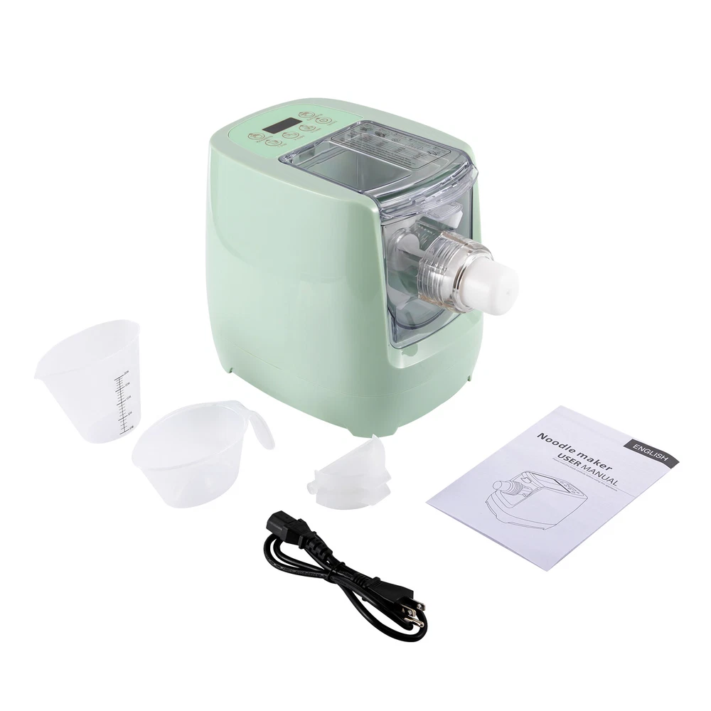 Application It can be used to make thick noodles, long noodles, spaghetti, lasagna, macaroni, dumpling wrappers, etc. How to Use Pour the flour into the machine. Select the function according to the quantity of flour. Slowly and evenly pour water into the machine. Wait for the noodles to be born! Specification Color: Green Material: Plastic Sheel, Pure Copper Motor Number of Noodle Shapes: 12 Operation Mode: Automatic Plug: US Standard Voltage: 110V Power: 260W Capacity: 0.6kg/ 1.32lbs Product Size: 32.5*19*25/ 12.8*7.5*10.1in Package Size: 43.5*26.5*32.5cm/ 17.13*10.43*12.8in Net Weight: 4kg/ 8.82lbs Gross Weight: 4.8kg/ 10.58lbs Package Included 1* Automatic Pasta Machine 1* Flour Cup 1* Measuring Cup 1* Power Cable 1* English User Manual Other Need Accessories Have a nice day~ Description Specification Color: Green Material: Plastic Sheel, Pure Copper Motor Number of Noodle Shapes: 13 Operation Mode: Automatic Plug: US Standard Voltage: 110V Power: 260W Capacity: 0.6kg/ 1.32lbs Product Size: 32.5*19*25/ 12.8*7.5*10.1in Package Size: 43.5*26.5*32.5cm/ 17.13*10.43*12.8in Net Weight: 4kg/ 8.82lbs Gross Weight: 4.8kg/ 10.58lbs Package Included 1* Automatic Pasta Machine 1* Flour Cup 1* Measuring Cup 1* Power Cable 1* English User Manual Other Need Accessories Key Features Making Health Noodles: With this high-quality automatic paste machine, you can choose the best materials to make delicious and healthy noodles at home without any additives! Cooking Assistant: This is a fully automatic pasta machine. You just need to wait for it to mix, knead and squeeze the flour. It only takes about five minutes to get vertical, non-stick , and smooth noodles! Taste Buds Feast: It uses a hand-like kneader, which can imitate the way of hand kneading and beat the flour thousands of times. In addition, it uses a five-thread rolling pin to press noodles with ancient methods, so that you can eat noodles with a strong taste like handmade noodles! Multi-functional Machine: It can produce 13 different types of noodles according to different flour proportions, such as thick noodles, long noodles, spaghetti, lasagna, macaroni, etc., to meet your family's different taste needs. And it can not only make noodles but also make dumpling wrappers, making it an essential machine for noodle lovers! Large Capacity: It can hold 0.6kg/ 1.32lbs of flour, and can make more pasta at a time to meet the needs of the whole family. High Safety: The machine will start only when the cover is completely closed, to ensure that you can use it more safely. Easy to Clean: It has an integrated mixing and extruding cavity, which will not stick to the cup after kneading the flour into a small dough. It will not waste your flour, but also facilitate cleaning. And its detachable thread rolling pin is also convenient for you to clean. Compact and Lightweight: Its small size(32.5*19*25/ 12.8*7.5*10.1in) means it is easy to store on your countertop or cabinet. And it has a moderate weight (4kg/ 8.82lbs), so you can take it out without feeling heavy when you need it. Low Noise: This automatic pasta machine uses a copper motor, which has low friction during operation, will not make a lot of noise, and will not disturb your family, creating a comfortable environment for your kitchen. Durable Material: It is made of high-quality plastic material, hard and waterproof , so you can use it for a long time. Ideal Gift: This beautiful automatic paste machine with practical functions is an ideal birthday, Thanksgiving, and Christmas gift for family or friends. Easy to Use: The machine provides you with operating procedures, and the package is attached with a detailed instruction manual, which can guide you to make delicious and healthy pasta. Details Measuring Cup: We provide you with a measuring cup with a clear scale to help you master the proportion of flour and water more accurately. Cover of the Machine: The cover of this automatic pasta machine has water filling holes, which allows you to add water without opening the cover to ensure your safety. Application It can be used to make thick noodles, long noodles, spaghetti, lasagna, macaroni, dumpling wrappers, etc. How to Use Pour the flour into the machine. Select the function according to the quantity of flour. Slowly and evenly pour water into the machine. Wait for the noodles to be born! Notes Please make sure not to add too much water, otherwise, it will stick to the machine and cannot pass through. It should be as thick as bread crumbs or ground cheese. If you want to clean the machine quickly, you may as well dry the remaining flour in the machine, then gently scrape the dry flour with a cleaning tool, and finally rinse it with water. Some noodles may come out more slowly than others, please wait patiently. But this is not a problem for thick spaghetti. Please allow the slight color difference caused by the shooting light and 1-3cm error due to manual measurement, and make sure you do not mind before ordering. Payment Delivery details Terms of sales About us Contact us Payment We accept ebay payment 。 Fees such as import duties, taxes are not included in the item price or shipping costs. These charges are the buyer's responsibility. Delivery details Shipping: 2-9 working days to: USA Terms of sales We maintain high standards of excellence and strive for hundred percent customer satisfaction. Feedback is very important to us. We hope that you contact us immediately before you give neutral or negative feedback, so that we can address your concerns. It is impossible to address issues if we do not know about them! About us Your satis faction is our ultimate goal. We work hard to earn your trust and future business. Our certified technicians have tested each item before shipping. The unit comes with 1 year limited warranty on all manufacturing defects. a) If you receive a defective item, you may return it or ask for a discount. Please contact us within 14 days after you receive the package. b) What