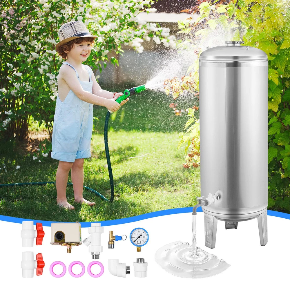 Store category Sign Up Now ! You may also like Product Description Bullet Points: Weather-Resistant Endurance: Use our stainless steel well pressure tank in any climate from -60 to 60 . Made of food-grade materials for environmental protection and zero odor, the tank is heavy-duty and won't freeze in winter. Pressure with Confidence: With the ability to withstand 6kg of pressure. It also features an automatic discharge port and top cleaning port for easy maintenance, maintaining a consistent work pressure up to 3kg. Efficient Water Supply: Elevate your water supply with our stainless steel well pressure tank, engineered to increase water pressure, boost well water, and improve flow efficiency, avoiding low-pressure water flow for an optimized experience. Easy to operate: This stainless steel well pressure tank automatically pumps water as levels drop and stops when full, ensuring a steady water supply without manual intervention, based on the efficient pneumatic supply principle. Versatile use: Ideal for pumping well water, pressurized tap water, and industrial cleaning, it also fills building water systems with pure, clean water both cold and hot. With high and low temperature resistance, automatic discharge port, and automatic stop when full, this tank ensures optimal performance and durability. Product material: stainless steel Product model: 100L Product size: 40x90cm/15.75x35.43 inches Product applicability: schools, factories, households, irrigation Product List: 100L stainless steel pressure tank * 1pcs Pressure on-off * 1pcs Pressure gauge * 1pcs Safety controller * 1pcs 2-in-1 air replenishment check controller * 1pcs Sewage outlet elbow * 1pcs Straps * 2pcs Water outlet joint * 1pcs Water outlet ball controller * 1pcs Sewage outlet ball controller * 1pcs Payment Delivery details Terms of sales About us Feedback & DSRs Payment Before you palce an order, please kindly make sure that you have a paypal account. We accept PAYPAL payment only. Payment should be completed within 2 days after auction closed, or unpaid dispute will be filed for an closing auction. An unpaid case will be filled after 4 days. Delivery details We ship to your eBay address. Each package will be shipped to US by UPS Regular Parcel with tracking number. Please check your shipping address carefully before checkout, it can't be changed if order completed. All items will be shipped within 1-2 business day upon receipt of payment.Orders placed on weekend will be shipped within 3 days. If you do not receive your item in 7-10 business days.please contact us immediately for further assistance. We will be responsible for any damages or losses incurred in the shipping process. About us We maintain high standards of excellence FIVE STAR and strive for 100% customer satisfaction! Positive Feedback is very important to us. We hope that you contact us immediately Before you give us neutral or negative feedback, so that we can satisfactorily address your concerns. We promise to offer the lowest price and high quality produce. Our working time: From Monday to Friday(9:30 am to 18:00pm), we don't working on holidays ,hope you can understand and know that , thank you. Please always talk to us via ebay Message. We appreciate your business and look forward to growing our e-Bay sales with satisfied customers. Feedback Contact us If you have any questions, please feel free to contact with us by ebay Message during our business hours ( 9:30a.m. to 5:30 p.m.), or email us through eBay, we will try our best to help you to resolve it. For any presale or after-sale questions,please do feel free to email us! Due to the time difference, each email will be replied within 1 working day,and weekend will be delayed a bit. Feedback