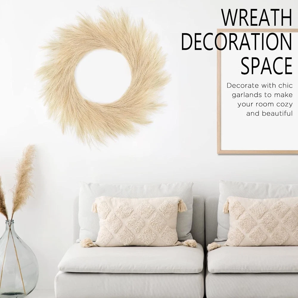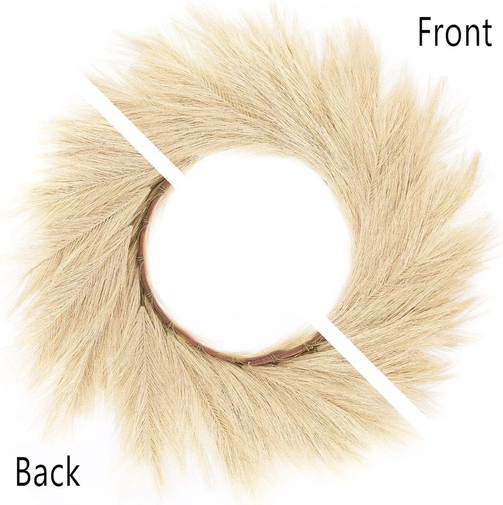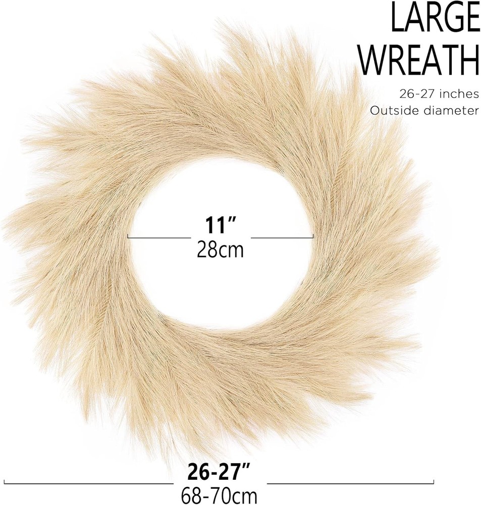 Hananona Artificial Pampas Grass Wreath, 26" Faux Decor Beige Product Details Color: Beige Brand: Hananona Material: Silk Mounting Type: Wall Mount Shape: Round Item Weight: 0.36 Kilograms Product Dimensions: 10"D x 5"W x 2"H Occasion: christmas Manufacturer: Hananona Item Weight: 12.6 ounces Item model number: Artificial Pampus Wreath ARTIFICIAL PAMPAS WREATH: Artificial pampas grass wreath is a great Boho home wall hanging decor. The artificial pampas wreath is simple designed to allow you to decor it with other ornaments. GREAT DECOR FONDATION: This artificial pampas wreath is suitable for weddings, anniversaries, birthdays, or at Christmas time. By add ornament and tinsel or Christmas flowers, it can be a fabulous decor for any holiday or celebration. VERSATILE: The pampas wreaths can be used as wall hangings, door hangings or table décor. There is a hook at the back of the wreath for your convenience. PACKAGE AND SIZE: The package include 1 beige artificial pampas wreath. It is around 24”-27.5” in diameter. PREMIUM MATERIAL: The artificial pampas wreath was made of silk, each wreath consist of 108 pampas stem which make it dense and fluffy. The wreath can be more fluffy when leave it for a while since they are taken out of the packaging. You can tease out the plume so that it can be bigger and fluffier.