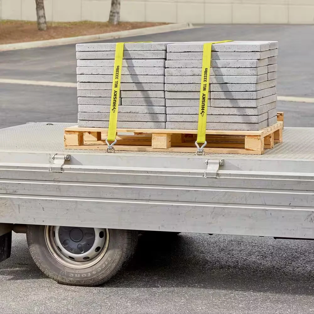 27 Ft. X 2 In. Heavy-Duty Ratchet Tie-Down Strap with J Hook Working load limit of 3333 lbs. Weather-resistant and UV-resistant for durability Heavy-duty design offers a lasting use The easiest way to secure vehicles for transport by the axle. Thick, soft polyester 2 in. W yellow tie down webbing provides excellent durability and long service life and is gentle on valuable vehicles. 3333 lbs. working load for heavy-duty use. Polyester Webbing Resists Weather and is UV-protected. Ideal for securing heavy-loads Break strength of 10000 lbs. provides effective use, working load is 3333 lbs. Polyester webbing, weather-resistant, UV-protected design resists wear from the elements Ratcheting buckle offers a secure attachment Color Yellow and Black Color Family Yellows/Golds Hardware Color Family Yellow Hook(s) Yes Material Polyester (100%) OSHA recommended safety latch No Origin Imported Package Quantity 1 Product Weight (lb) 9.5 lb Returnable 90-Day Tie-Down End Type J Hook Tie-Down Features UV Protected,Weather Resistant Tie-Down Product Type Ratchet Strap Working Load Limit (lbs) 3333 Product Depth (in) 4.75 in Product Height (in) 9.5 in Product Width (in) 9.5 in Strap Width (in) 2 in Strap length (ft) 27 ft 9.5 inches x 4.75 inches x 9.5 inches. Weight: 9.5 lb