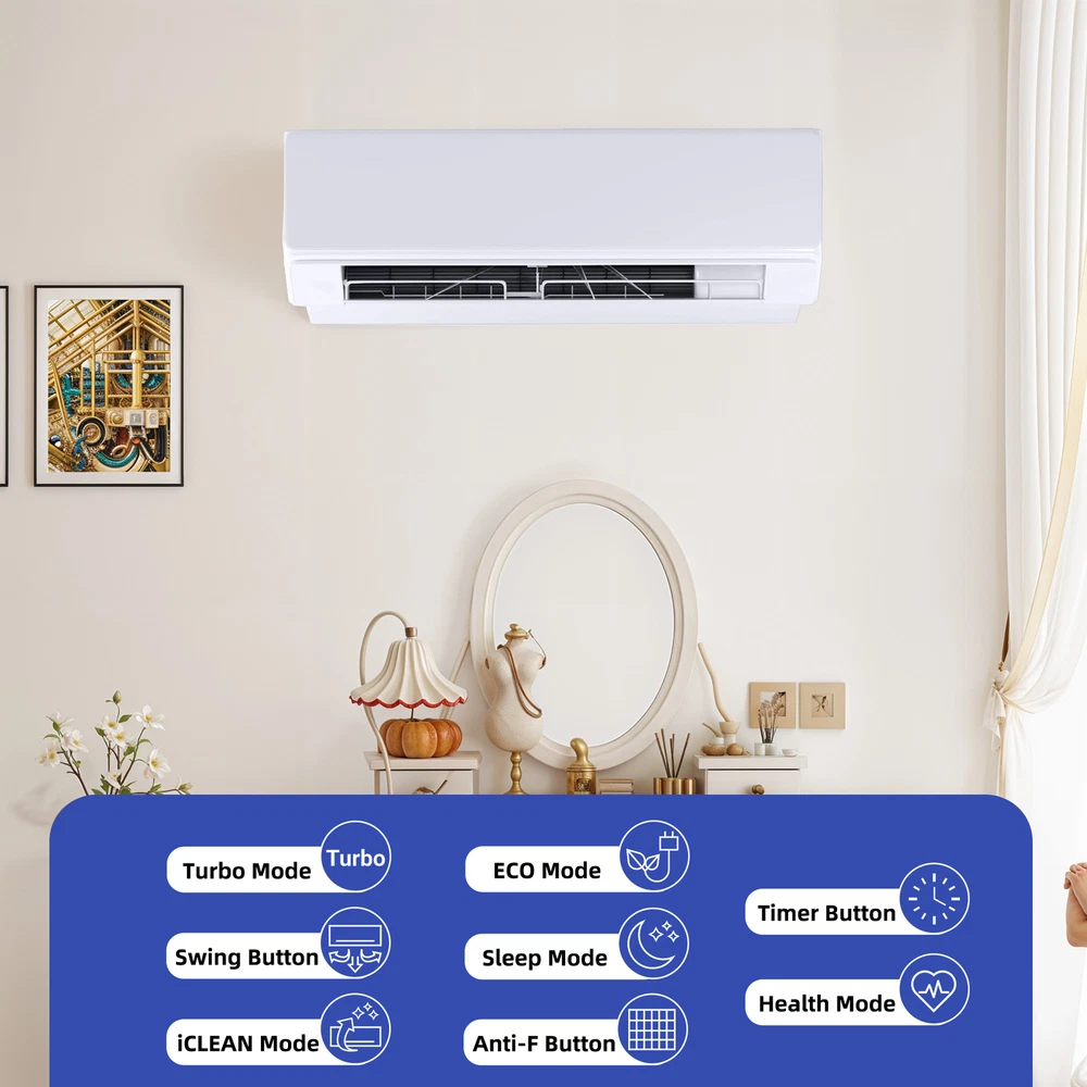 27k BTU 2 Zone 12k BTU Mini Split Air Conditioner Heat Pump System Wifi Ductless Product Description NOTE: Professional Installation would be Highly Recommended. Descriptions: 1. Material: Iron, Stainless Steel, Plastic 2. Color: White 3. Mounting: Wall-Mounted 4. Special Design: Mini Split AC, 12k (2-unit), Inverter, Wifi Control, Ductless 5. Suitable For: Bedrooms, Home Office, Living Room, Basement Features: 1. Energy-Saving Mini Split System : Maximize your comfort while minimizing energy costs with this dual zone mini split system, featuring an advanced heat pump and inverter technology for 25% energy savings. Designed to cool and heat spaces up to 1100 square feet, it’s perfect for bedrooms, RVs, garages, and commercial spaces. Certified by ETL and AHRI, this system guarantees exceptional energy efficiency and reliability for year-round use. 2. Versatile Climate Control : Enjoy customized comfort with this 27,000 BTU dual zone air conditioner and heater, offering five versatile modes: auto, cool, dry, heat, and fan. Wi-Fi and Alexa compatibility make it easy to adjust settings from anywhere. With added features like iCLEAN mode, sleep mode, and a 24-hour timer, this unit adapts effortlessly to your daily routine while optimizing energy efficiency. 3. Dual -Zone Cooling and Heating : Create a serene environment with this ductless mini split system, operating at noise levels as low as 42 decibels. With precise temperature control ranging from 60°F to 90°F, this system delivers quiet and effective climate control for multiple zones. Ideal for spaces where silence matters, it provides uninterrupted relaxation while maintaining superior performance. 4. Weather Performance with 4D Airflow : Stay comfortable in any weather with this dual head mini split system, engineered to function seamlessly in temperatures as low as 5°F and as high as 118°F. Its 4D airflow design circulates air evenly across rooms, reaching up to 50 feet for consistent heating and cooling. Perfect for extreme climates, this system ensures your space stays cozy year-round. 5. Easy Maintenance : Simplify installation and upkeep with this dual zone mini split system, shipped with an indoor unit, outdoor unit, remote control, and a comprehensive installation kit. The washable air filter is designed for hassle-free maintenance, ensuring long-lasting efficiency. Professional installation is recommended for optimal performance. Dimensions: 1. 12k Dimensions: 34.4"D x 7.6"W x 11.7"H 2. Area Coverage: 1100 SQ Ft 3. Voltage: 220V Package Includes: 1. 2 x 12k AC Unit 2. 1 x Outdoor AC Parts 3. 2 x Remote Control Shipping 1. Normally the item will be dispatched within 1 business day if payment is cleared before 12pm PST. 2. Please verify the correct shipping address in your PayPal account before making the payment. We only dispatch the item to the address that is sent to us at the time of checkout. 3. We don't ship to Hawaii, Alaska, Puerto Rico, APO/FPO/PO Boxes. 4. We don't provide local pick-up service. 5. Normally we will use USPS, UPS, FedEx & LTL to dispatch items. Payment 1. We accept PayPal and credit card. 2. We will ship to the confirmed Paypal shipping address that is provided with the payment only. Return 1. 30 days Money Back Guarantee. 2. Please contact our customer service to receive a RMA form first if want to return the item. 3. All returned items MUST in new condition with the original package. Contact If has any problem, please contact us by sending an ebay message. Our customer service will resolve the problem as soon as possible. On Dec 12, 2024 at 19:55:41 PST, seller added the following information: