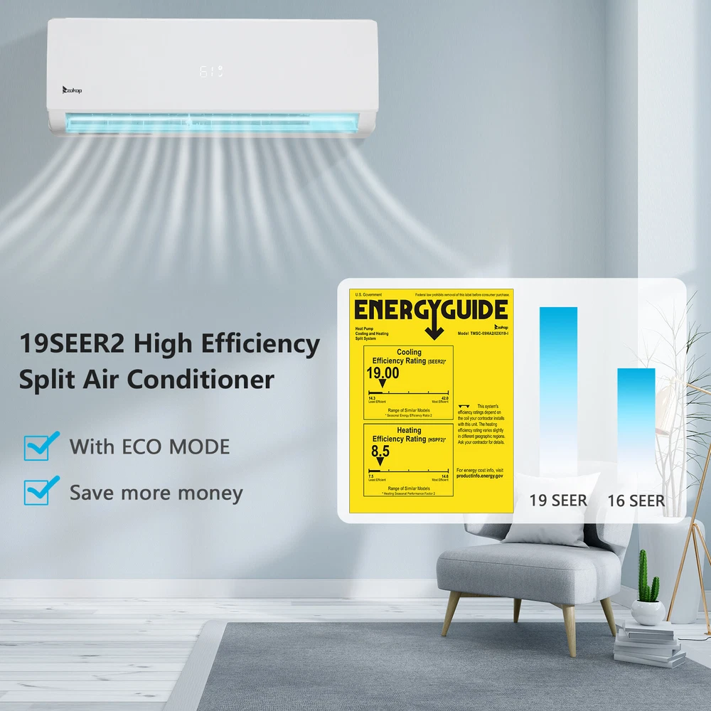 listing template VISIT OUR STORE SIGH UP FOR EMAIL 27000 BTU 4-in-1 Tri Zone Ductless Mini Split Air Conditioner Inverter Heat WIFI ZOKOP Tri 3 Zone Ductless Mini Split Air Conditioner Heat Pump System, 19 SEER2 Ductless AC with 3 Indoor Air Handlers, 1 Outdoor Condenser, 25ft Installation Kit (9K+9K+12K) Introductions : ZOKOP smart Split Type Type Inverter Air Conditioners with heating function are made with high quality compressor, high speed pure copper motor & inner spiral copper tube which are powerful to quickly cool down / warm your home, office, garage or apartment for maximum comfort in quiet operation, perfect appliance in hot Summer or cold Winter. Comparing with others, machine featured with high SEER grade, which means that it is more energy efficient and much money saving! This unit also has Sleep, Turbo, ECO, Mute and Timer functions. These functions help you enjoy the true individual comfort. Let the ZOKOP Mini Split Air Conditioner 3-Zone be the solution to your home's heating and cooling needs. Features: [MULTIPLE ROOMS] Comes with 3 indoor air handlers 9,000 BTU +9,000BTU+ 12,000 BTU with separate controller for individual rooms and 1 outdoor condenser. Enjoy individual temperature controls in each room for ideal climate control. This unit provides cooling and heating for up to 1350Sq. Ft (2 indoor unit recommended area 400 Sq. Ft, another one 550 Sq. Ft) and able to work in environments as low as 5 degrees Fahrenheit. 3pcs 24.6ft copper pipes (Standard size 1/4" & 3/8" outer dimension) and 3 installation kits included. The length for drain pipe is 78.7". Featured with Cooling, Heating, Dehumidifying and Fan only modes in one compact unit. It is ideal for using in home's bedroom, living roo, kitchen, office, apartment, garage and so on. [Energy Saving] ZOKOP the speed of the air conditioner equipped with frequency converter directly affects the service efficiency of the air conditioner. The frequency converter is a control system used to control & adjust the speed of the compressor to make it always in the best speed state, so as to improve the energy efficiency ratio (at least 30% more energy-saving than the conventional air conditioner). This 19 SEER2, 9,000 BTU +9,000BTU+ 12,000 BTU,208/230V~60Hz, AHRI Certified AC unit with a heat pump(up to 5℉/-15℃) is featured high quality compressor for more efficient cooling and longer working life; Higher SEER grade & Eco-friendly design which leads you for money saving ( please confirm voltage before making purchase) . [Quiet Cooler & Heater] Ultra Silent at only 27-42 dB(A) and beautifully built adds a touch of elegant charm to your room.In sleeping & mute mode, It's able to maintain the temperature while you are sleeping. And you can use the 24-hour timer in combination to free you from additional worries. Featured with 4-way swing function, unit provides scientific airflow in your room to suit your comforts in just a few minutes.Best choice to decorate your home. [Smart Operation] Operating this conditioner is an easy-understanding and enjoyable cooling experience (61-88degree Fahrenheit ). We can set all functions on remote control (Fan Speed Selection, Sleep Mode, 24 Hour Timer, ECO Mode, Turbo Mode, and Mute Mode). Built-in microprocessor chip & sensor in the remote controller makes it more convenient to operate the air conditioner from a distance. Digital LED display controls offer precise temperature adjustments and the remote control lets you control the air conditioner from across the room. [Washable Air Filter] This indoor AC machine comes with a permanently washable and easy cleaning air filter. Keep your air conditioner running more efficiently by cleaning the filter once a month. Specifications : 3*I ndoo r Unit: 1. Color: White 2. Power Supply: 208/230V, 60Hz 3. Cooling : Rated Capacity: 9000Btu/h, 12000Btu/h Rated SEER2: 19Btu/W.h Rated EER2: 10Btu/W.h 4. Heating: Rated Capacity: 10000Btu/h, 12200Btu/h HSPF2 Rating (Region IV): 8.5Btu/W.h 5. Operation temperature: (16~31)degree Celsius/(61~88)degree Fahrenheit 6. Use the air conditioner in the following temperature conditions: Indoor(cooling/heating): 17 ~32degree Celsius(63 ~90degree Fahrenheit)/0 ~27degree Celsius(32 ~80degree Fahrenheit) Outdoor(cooling/heating): 15 ~55degree Celsius(59 ~131degree Fahrenheit)/-15 ~24degree Celsius(5 ~75 degree Fahrenheit) 7. Moisture removal: 1.1L/h, 6L/h 8. Indoor air circulation/Hi : 600m³/h, 650m³/h 9. Indoor noise level at cooling(Turbo/High/Med./Low/Mute): 42/39/34/29/27dB(A) 10. Application Area: 9000BTU Up to 400 sq.ft, 12000BTU Up to 550 sq.ft 11. Certificate : AHRI, ETL 12. Indoor Dimensions: 81.1x29.2x20.5cm(31.9x11.5x8.1inch) 13. Indoor Package dimensions: 88.5x36.6x27.8cm(34.8x14.4x10.9inch) 14. Indoor Net weight: 9.5kg/20.9Ibs 15. Indoor Gross weight: 12.7kg/28Ibs 1* Outdoor Unit: 1. Cooling Capacity: 27000BTU/h 2. Heating Capacity: 27000BTU/h 3. SEER2: 19.0BTU/h.W 4. Rated Voltage: 208/230V~60Hz 5. Refrigerant type: R410A/2200g/77.6 ozs 6. Outdoor Dimensions: 90x36x80.5cm(35.43x14.17x31.69inch) 7. Outdoor Package dimensions: 102.8×47.5×86.5cm(40.47x18.7x34.06inch) 8. Outdoor Net weight: 56kg/123.5lbs 9. Outdoor Gross weight: 60.5kg/133.4lbs 3*Copper pipes : 1. Connecting Pipe:Gas 3/8''-24.6FT/7.5M Liquid 1/4''-24.6FT/7.5M 2. Signal Cable Length: 24.6FT/7.5M 3. Drain Hose:6.6FT/2M Package Includes : 3* Indoor box includes : 1 x Indoor Unit 1 x Remote Control 1 x Screw Pack 1* Outdoor box includes: 1 x Outdoor Unit 4 x outdoor feet rubber 3*Copper pipes box includes: 1 x Copper pipes set(24.6FT) 1 x Signal Cable(24.6FT/7.5M) 1 x Drain pipe(6.6FT) 1 x Drain pipe adapter 2 x Sealant 2 x Wall sleeve cover 2 x Pipe tape 1 x Insulation pipe 1 x Wall sleeve You might like this more>> Portable Princess Castle Play House Blue Large Kids Play Tent $23.79 Double Shoe Rack Closet Shelf Storage Organizer $19.49 Oil Painting Easel Sketch Box Portable Folding $57.49 FCH L-Shaped Corner Computer Desk Home Office Desk $
