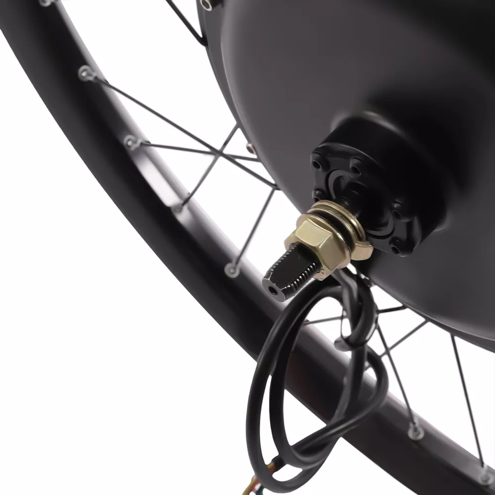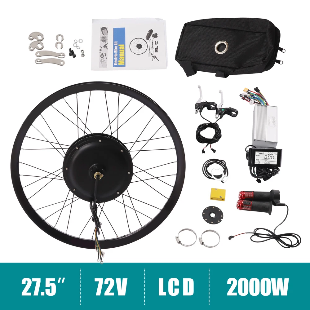 Have a nice day~ 72V 2000W Rear Wheel Motor, 2000W Electric Bike Kit,72V with Mutifunction Display, Electric Bicycle Conversion Kit Note: This set does not include tires and needs to be purchased by the customer. The suitable tire size is 27.5*2.5-3.0inch Description If you are in pursuit of speed and excitement, you will be annoyed by the difficulty of climbing a mountain by bicycle! Then you can try this electric bicycle motor conversion kit to get your high-power electric bicycle. This professional and reliable conversion kit is the ideal choice for you to become a runner who is chasing the wind. Key Features Premium Material: The motor wheel and rim of this conversion kit is made of aluminum with good performance, which is sturdy, durable, and not easy to rust. Budget-friendly Design: The package of this kit includes all the items required, such as handlebars, controller bags, etc., so you don't need to buy them separately, which saves your costs and provides you with more convenience. Brushless and Toothless Motor: Our kit uses an upgraded 2000W brushless and toothless motor, which runs smoother and is less noisy than a brushed motor, thus providing stable power to the bike. And brushless motors do not need to replace brushes, making maintenance easier. High Efficiency: The rotating speed of the product is 560rpm, and the torque is 60N M. At the same time, it is equipped with 9-gear speeds, which can be adjusted according to your needs, providing you with a better riding experience. Powerful Control: This conversion kit is equipped with a powerful controller, which is conducive to ensuring the smooth operation of other parts, making your entire process safer and easier. Multiple Functions: The conversion kit is equipped with a clear LCD display, which can display speed, mileage, and faults so that you can timely master the status of the bike. In addition, this conversion kit has nine-speed adjustments and cruise control functions, which can fully meet your needs. Convenient Installation: A detailed installation manual is concluded in the package, so you only need to follow the manual steps, which saves you energy. Ideal Gift: With powerful functions and a beautiful appearance, you can give this conversion kit to your friends or family who love riding. Enjoy Riding: With this high-performance and cost-effective conversion kit, you can convert ordinary bicycles into electric bicycles, enjoy riding more confidently and happily, and have a better mood. Worry-free Service: We have been working hard to provide better service and quality for our customers, which is our goal. If there is any quality problem with our conversion kits. Please contact us in time. Details Auxiliary Sensor: The pedal of this conversion kit is equipped with an auxiliary sensor, which can transmit your stepping frequency and force to the controller, and then adjust the motor speed accordingly. Controller Bag: This conversion kit is equipped with a black controller package, which can store the controller. Application This conversion kit is also suitable for cyclists to convert ordinary bicycles into electric bicycles and it fits 27.5-inch bikes. Specifications Wheel Material: Aluminum Color: Black Bike Type: Electric Bike Number of Speeds: 9 Suspension Type: Rear Special Feature: Electric Output Voltage: 72V Power: 2000W Rotational Speed: 560rpm Torque: 60N.M Net Weight: 12.2kg/26.9lbs Gross Weight: 14kg/30.86lbs Package Size: 62*62*23cm/24.41*24.41*9.06inch Wheel Size: 27.5inch Wheel Width: 3.9m/1.53inch Wheel Diameter:57.3 cm/22.56inch Thickness with Flywheel: 20cm/7.87inch Package Included 1* Motor Wheel 1* 9-speed Flywheel 1* Controller 1* LCD Display 1* Ordinary Throttle 1* Pedal Assistant Sensor 1* Power-off Brake Lever 1* Controller Bag 1* English Manual All Accessories for Assembly Notes Please read the user manual carefully before use and pay special attention to the safety precautions included. Please allow the slight color difference caused by the shooting light and 1-3cm error due to manual measurement, and make sure you do not mind before you order. Payment Delivery details Terms of sales About us Contact us Payment We accept ebay payment 。 Fees such as import duties, taxes are not included in the item price or shipping costs. These charges are the buyer's responsibility. Delivery details Shipping: 2-9 working days to: USA Terms of sales We maintain high standards of excellence and strive for hundred percent customer satisfaction. Feedback is very important to us. We hope that you contact us immediately before you give neutral or negative feedback, so that we can address your concerns. It is impossible to address issues if we do not know about them! About us Your satis faction is our ultimate goal. We work hard to earn your trust and future business. Our certified technicians have tested each item before shipping. The unit comes with 1 year limited warranty on all manufacturing defects. a) If you receive a defective item, you may return it or ask for a discount. Please contact us within 14 days after you receive the package. b) What you returned must be intact and in its original packaging as re? u. Customer is responsible for shipping costs of the returned item. c) We will cover the cost of shipping back t with the shipping rate indicated in the registration page. We will send you a new unit or refund the full payment you paid. Thank you. Contact us Business Hour Business Hour: Monday To Friday: 8:30 AM to 5:00 PM (Beijing China time) Due to time zones, our reply to your questions may not be immediately. But within above working time, we will reply your email within 24 hours. If it's non-workdays, please kindly be patient and wait till Monday. Please contact us with ebay message. Please feel free to contact us if you have any questions. Monday To Friday: 8:30 AM to 5:00 PM (Beijing China time) Due to time zones, our reply to your questions may not be immediately. But within above working time, we wil