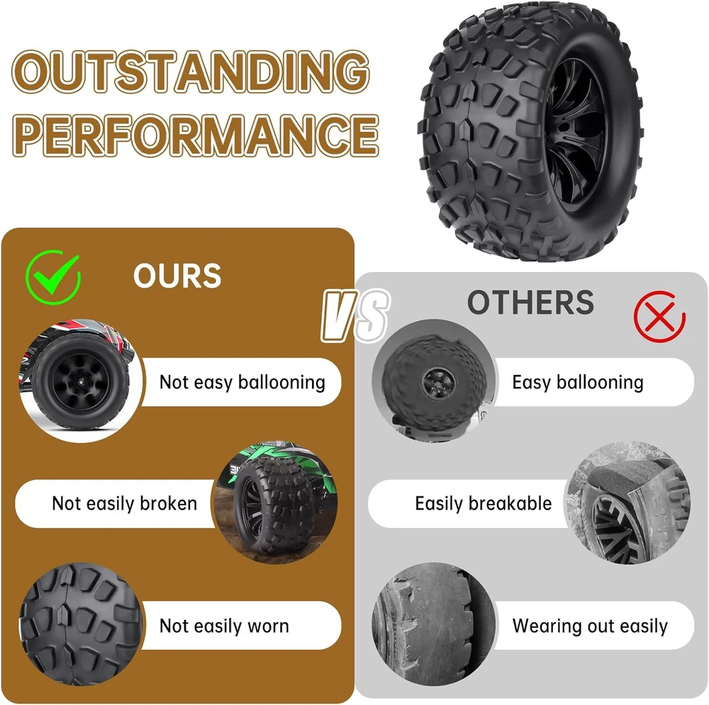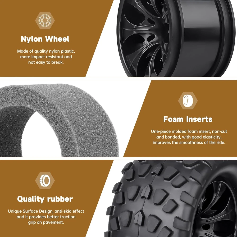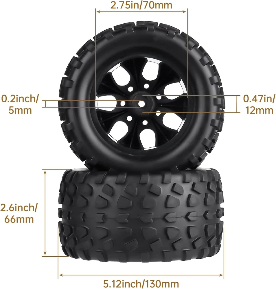 Store New Arrivals Add to Favorite View Feedback Contact 2.8 Tires and Wheels 12Mm Hex 1/10 Scale RC Monster Truck Wheels Description Item Weight 1.65 pounds Item model number U4H0455 Manufacturer recommended age 14 years and up Package Dimensions 11.69 x 10.94 x 2.99 inches Manufacturer Hobbyfire Outer diameter(Height): 5.12" (130mm) | Width: 2.59" (66mm) ; Wheel Rims Inner diameter: 2.75" (70mm) | Wheels Hex size: 12mm | Axle Hole: 5mm The Tires and Wheels Not Glued. You need to you glue the edges of the inside of the wheels&tires Fits for Traxxas Rustler 2WD, Traxxas Rustler 4x4 VXL, Traxxas Stampede 2WD, Traxxas Stampede 4X4 VXL, Traxxas Hoss 4x4, Redcat Volcano EPX Pro, Redcat Blackout XTE Pro, and most 12mm Hex Hubs 1/10 Scale Monster Truck Off Road Models. The Wheel Rims Made of high quality Nylon, Durable, NOT EASY BROKEN when working with 2S 3S Brushless. Quality Rubber & Foam, Good Grip & Wear-resistant Novel appearance and exquisite workmanship. Product Description ABOUT US We offer the best prices around on high quality products. Our E-store includes media such as books, movies, music and games while offering electronics, toys, sporting apparel, clothing, tools, general home, garden items and more. SHIPPING We are always working hard to ensure your package arrives as soon as possible. Please understand that some factors like weather, high postal traffic, and the performance of shipping companies are outside of our control. We offer free shipping to the lower 48 states and ship within 2 business days of payment, usually sooner. We do not accept P.O. Boxes. Please provide a physical address. For shipping outside of the continental USA, we only use eBay's Global Shipping Program.The item is shipped to KY and then sent to the rest of the world. International customers are responsible for all duties and taxes. Continue to check out in order to calculate costs for shipping the item to your country. Messages regarding eBay's Global Shipping Program MUST be directed at eBay EXCLUSIVELY. RETURNS We offer a 30-Day Return Policy on items which you are not completely satisfied with. You have the option for a full-refund or an exchange of the item. No returns are available on items shipped outside of the USA. PAYMENT We accept PayPal. CONTACT US This page content is yet to come Please ad us to your favorite seller and visit again later Thank You CUSTOMER SATISFACTION We try our very best to make sure every customer is completely satisfied. If there's a problem, message us! We're happy to help. WE ACCEPT Copyright © 2021 AutoDS. | All Rights Reserved