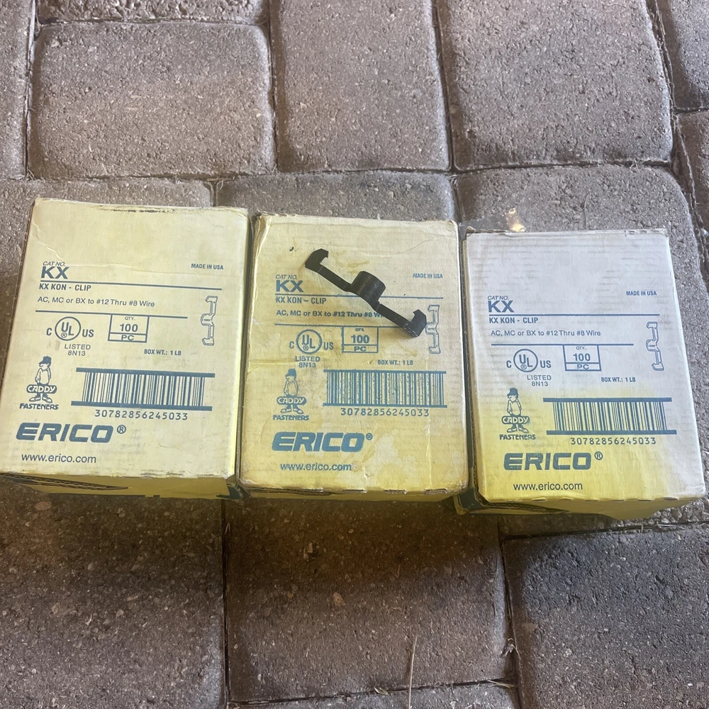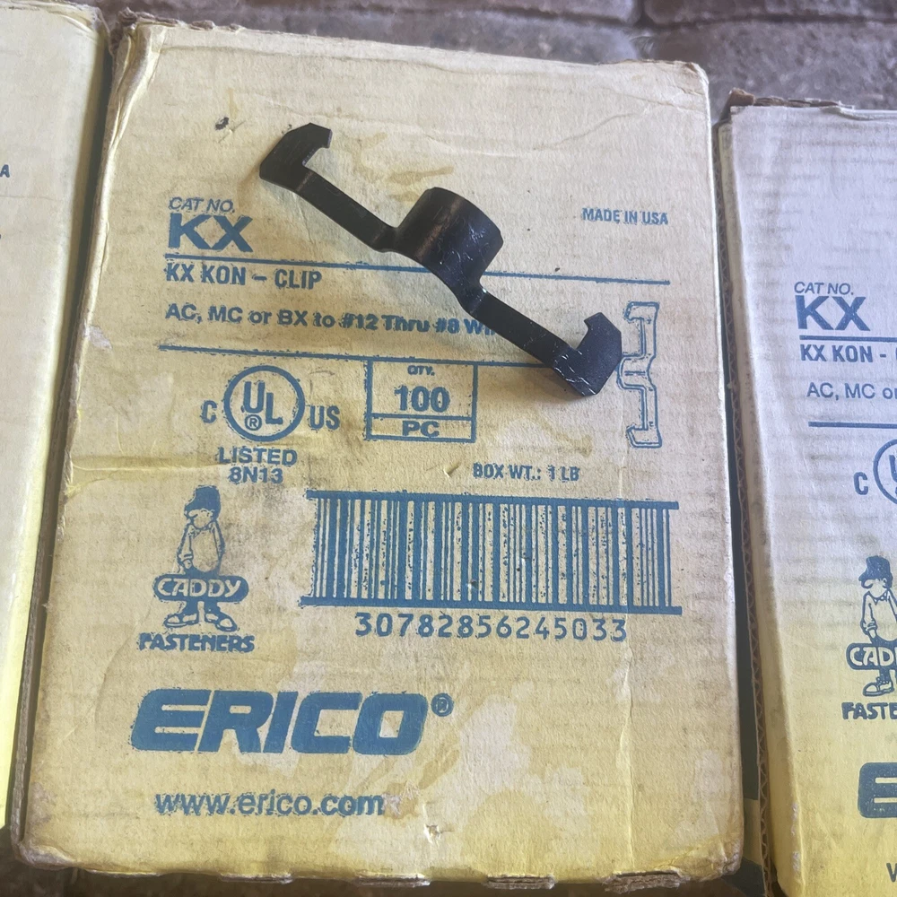 This Erick Caddy wire conduit clip box contains 280 pieces of semi-flexible steel clips with a gauge of #12-#8. The clips come in an open box and are suitable for bundling as shown in the pictures. The mounting style and accessory type are conduit clips, and the connection type is as shown. The clips are made in the United States and comply with California Prop 65 and IP rating standards. This custom bundle is perfect for those in need of electrical equipment and supplies for their business or industrial needs. 2 boxes 140 per box