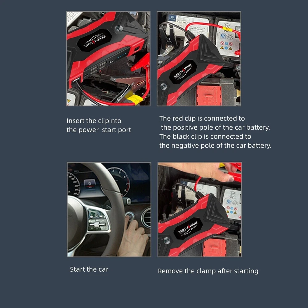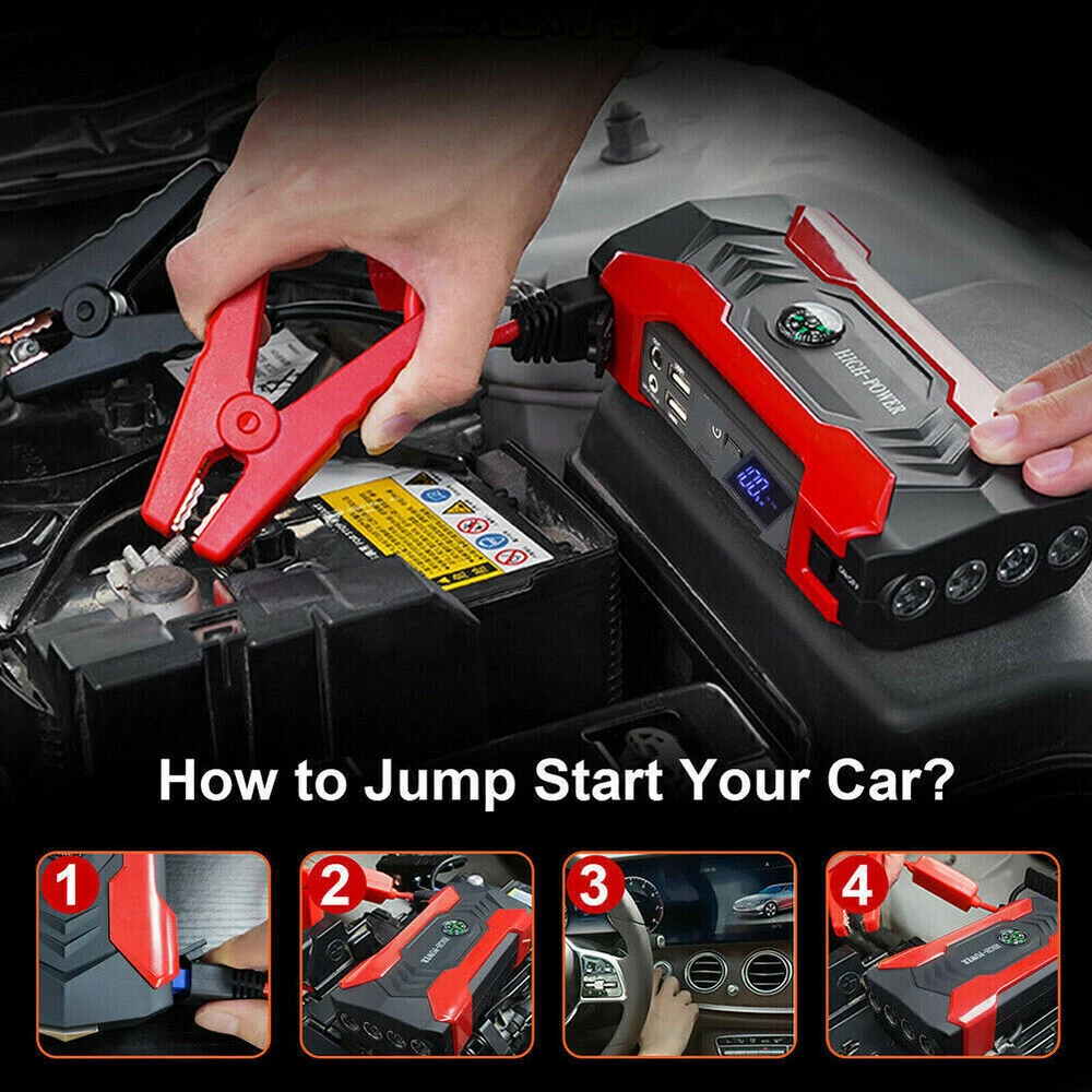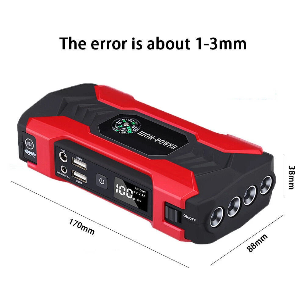 Features: -It can jump start most vehicles (up to 6.0L gas or 3.0L diesel engine) with heavy durable clamps and cables, suitable for your 12V vehicles. -Not only as a car battery jump starter, but also can used as a power bank. Designed with 4*USB output (5V/2.1A), which can be used as a power bank and you can charge smartphones,tablets and so on. -Small enough to store in your glove box and light enough to pack in your bag. -Comes with an LED light,has 3 modes: normal light,strobe light and SOS light. Welcome to our store Car Jump Starter, 28000mAh Portable Charger Power Bank with LED Flash Light Features: -It can jump start most vehicles (up to 6.0L gas or 3.0L diesel engine) with heavy durable clamps and cables, suitable for your 12V vehicles. -Not only as a car battery jump starter, but also can used as a power bank. Designed with 4*USB output (5V/2.1A), which can be used as a power bank and you can charge smartphones,tablets and so on. -Small enough to store in your glove box and light enough to pack in your bag. -Comes with an LED light,has 3 modes: normal light,strobe light and SOS light. -With overcharge, voltage stabilization, over-discharge, short circuit, constant current, anti-reverse connection, temperature and magnetic field protection. Note: -If the car doesn't turn on after the first attempt, please wait more than 10s to try again. You may need to check if other reasons cause the car to fail to start if the car won't start after 3 times attempt. -Remove the jump starter in 30s after the engine starts. Do not allow positive and negative clamps to come into contact with each other. Make sure that the positive and negative clamps are connected to appropriate terminals. Specifications: Battery Capacity: 99800mAh Car Port Interface: 12V USB Interface: 5V Notebook Interface: 19V/16V/12V Input Voltage/ Current: 15V/1A Starting Current: 400A Peak Current: 1200A (< 3s) Working Temperature: -40 to 80 ℃ Charging Time: About 4 hours with a full charge Lifespan: Over 10,000 times Size: 17 x 8.8 x 3.8cm Package Included: 1 x Car Emergency Power 2 x Clips 1 x AU Charger 1 x Car Charger 1 x 3 in 1 USB Charging Cable 1 x Container Box 1 x User Manual Item Specifics Brand Unbranded Battery Capacity 28000mAh Car Port Interface 12V USB Interface 5V Notebook Interface 16V/19V Input Voltage/ Current 15V/1A Starting Current 400A Peak Current 1200A (< 3s) Working Temperature -40 to 80 ℃ Charging Time About 4 hours with a full charge Lifespan 3000 times Size 17 x 8.8 x 3.8cm Type Jump Starter Features Portable,LED Light Accessories Charging Cable,Carrying Case,Battery clip Car battery starter Jump Starter & Charger Voltage 12V Manufacturer Warranty 5 Years Payment We accept all forms of payment . Payment is expected within 2 days from the end of the auction. We send all the items are based on your paypal address. Therefore, please make sure your paypal address is valid. Shipping Handling time: 1 business day (Orders are not processed on weekends & holidays) Tracking information will be sent once item is shipped. Local pick-up is unavailable at the moment. For international shipping and shipping to Guam, Hawaii and Alaska, Please contact us before placing the order. Item is shipped to ebay address. Leaving correct address can minimize delay. Returns If you are satisfied with the purchase and our total service, your comment is very important in our business success. Please take a minute to leave us a positive feedback with an overall Detailed Selling Rating (DSR) of 5. Our eBay account setup auto feedback, so eBay system gives you automatically Positive feedback back after your positive feedback left. If you plan to give us a neutral/negative feedback Or open ebay/paypal case, please write to us immediately so that we can do our best to resolve your problem. Contact Us All messages will be answered within 24 office hours. Please contact us either by clicking "contact seller" in the "purchase history" section or simply click "ask a question" at the bottom of this page. If you are unsatisfied with our item or service, please contact us before leaving any feedback. We are committed to resolve all issues in a friendly and satisfactory manner. We always reply to messages within 2 business days (off-duty at weekend). If you do not get a response from us, then please check your junk or spam mailbox. Location Los Angeles,United States Please always talk to us via ebay Message. We appreciate your business and look forward to growing our e-Bay sales with satisfied customers. Welcome to our store DESCRIPTION PAYMENT SHIPPING RETURN POLICY CONTACT US Hot Item Picture New List Item Car Tire Inflator Cordless Digital USB Rechargeable Tire Air Compressor Pump 12V USD 0.01 Black Waterproof Backpack Rucksack Bag Plain Sport Hiking School Work Travel Bag USD 18.89 Half Face Gas Mask Reusable Respirator Mask With Filters Chemical Paint Mask USD 12.89 Rechargeable Table Desk Lamp LED Touch Dimmable Cordless Bedroom Night Light USD 17.89 Cordless USB Rechargeable Table LED Lamp-Touch Control Light,Portable Dimmable USD 16.89 Help & Info Payment Policy Shipping Policy Return Policy FAQ About Us Car Jump Starter, 28000mAh Portable Charger Power Bank with LED Flash Light Features: -It can jump start most vehicles (up to 6.0L gas or 3.0L diesel engine) with heavy durable clamps and cables, suitable for your 12V vehicles. -Not only as a car battery jump starter, but also can used as a power bank. Designed with 4*USB output (5V/2.1A), which can be used as a power bank and you can charge smartphones,tablets and so on. -Small enough to store in your glove box and light enough to pack in your bag. -Comes with an LED light,has 3 modes: normal light,strobe light and SOS light. -With overcharge, voltage stabilization, over-discharge, short circuit, constant current, anti-reverse connection, temperature and magnetic field protection. Note: -If the car doesn't turn on after the first attempt, please wait more than 10s to try aga