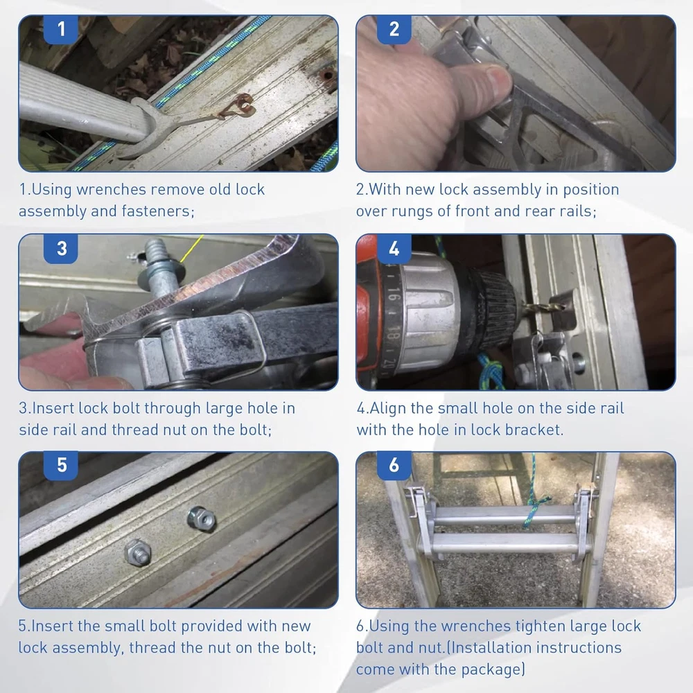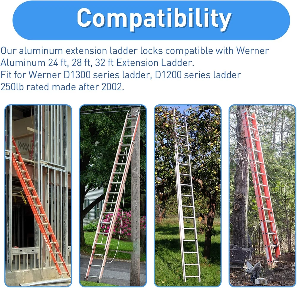 Store New Arrivals Add to Favorite View Feedback Contact 28-11 Rung Lock Kit for Werner Extension Ladder Locks, Compatible with Werner Description Manufacturer ChangTa Brand Name ChangTa Product Dimensions 1"W x 1"H Material Aluminum Material Type Aluminum Load Capacity 250 Pounds Maximum Height 0.65 Inches Item Weight 4.8 ounces Item Dimensions W x H 1"W x 1"H Additional Features Lightweight Special Feature Lightweight Brand ChangTa Size Werner 28-11 ๐๐ผ๐บ๐ฝ๐ฎ๐๐ถ๐ฏ๐ถ๐น๐ถ๐๐ : Our 28-11 ladder rung lock kit for werner aluminum extension ladders, compatible with Werner aluminum 24 ft, 28 ft, 32 ft extension ladder. And the extension ladder part also fit for Werner D1300 series ladder, D1200 series ladder, 250lb rated made after 2002. ๐ช๐ฎ๐ฟ๐บ ๐ง๐ถ๐ฝ๐ :The rung lock kit approximately 8" long. In order to use it properly, we recommend that you look at the product image (refer to Figure 3 for dimensions) carefully before purchasing to ensure that you are purchasing the correct part and that it fits your ladder model. [Our extension ladder accessories includes 2 ladder rung locks, 2 bolts, 4 nuts, 4 washers and 1 x Instructions. It provides great convenience for your extension ladder maintenance.] ๐๐ ๐๐ฒ๐ป๐๐ถ๐ผ๐ป ๐๐ฎ๐ฑ๐ฑ๐ฒ๐ฟ ๐ฅ๐๐ป๐ด ๐๐ผ๐ฐ๐ธ๐ : Our aluminum extension ladder locks are made of highly durable high-quality raw materials, which has been precision tested, sturdy, damage resistant and long use life, meets OEM standards. Even after collision and wear, it does not affect the use. ๐๐ฎ๐๐ ๐๐ผ ๐๐ป๐๐๐ฎ๐น๐น : You only need to remove and replace the old or damaged ladder rung locks, which can be completed in a few minutes, greatly improving the time efficiency, and enabling your extension ladder to quickly resume daily activities. During installation, it is recommended to wear gloves to protect your hands. ๐๐๐ ๐๐ถ๐๐ต ๐๐ผ๐ป๐ณ๐ถ๐ฑ๐ฒ๐ป๐ฐ๐ฒ : Your satisfaction is โGOODSKYO greatest motivation! If you have any questions about the extension ladder locks, you can send us an email at any time and we will provide you with a 100% satisfactory shopping experience. Product Description 28-11 Rung Lock Kit for Aluminum Extension Ladder Locks Compatible with Werner Aluminum Extension Ladders Fit for Werner Aluminum 24 ft, 28 ft, 32 ft Extension Ladder Rung Lock Kit Aluminum Extension Ladder Parts Our aluminum extension ladder locks compatible with Werner aluminum 24 ft, 28 ft, 32 ft Extension Ladder. The extension ladder part fit for Werner D1300 series ladder, D1200 series ladder, 250lb rated made after 2002. Easy Installation 1.Using wrenches remove old lock assembly and fasteners; 2.With new lock assembly in position over rungs of front and rear rails; 3.Insert lock bolt through large hole in side rail and thread nut on the bolt; 4.Align the small hole on the side rail with the hole in lock bracket. 5.Insert the small bolt provided with new lock assembly, thread the nut on the bolt; 6.Using the wrenches tighten large lock bolt and nut. Size The rung lock kit approximately 8" Long. (Please confirm the length of your ladder lock is 8" before purchasing.) Package Include 2รLock assemblies (1 right hand&1 left hand) + 2รSmall machine screw + 2รSmall lock nut + 2รLarge lock nut + 2รSmall screw gasket + 2รLarge screw gasket + 1รInstallation instructions Werner Replacement Parts Add to Cart Add to Cart Add to Cart Add to Cart Add to Cart Add to Cart Customer Reviews 4.4 out of 5 stars 116 4.3 out of 5 stars 30 4.3 out of 5 stars 18 4.8 out of 5 stars 147 4.4 out of 5 stars 116 4.7 out of 5 stars 32 Price $28.49 $ 28 . 49 $12.89 $ 12 . 89 $27.89 $ 27 . 89 $12.49 $ 12 . 49 $8.49 $ 8 . 49 $22.89 $ 22 . 89 Compatibility for Werner for Werner for Werner for Werner for Werner/Louisville/Keller for Werner Material Stainless Steel Stainless Steel Stainless Steel High-quality raw materials Aluminum & Fiberglass High-quality raw materials Size 8"W x 3"H 1.9"W x 2.7"H 0.39"W x 1.96"H 0.79"W x 0.79"H 1.6"W x 1.6"H 0.79"W x 0.79"H Includes 1 Pack Rung Lock Kit 31-12 Pulley kit 31-12 pulley kit and rope 1 Pack Extension Ladder Rope 2 set Flippers 2 Pack Extension Ladder Rope Feature Lightweight Lightweight Lightweight Foldable Lightweight Foldable Model Werner 28-11 Rung Lock Werner 31-12 Pulley kit Werner 31-12 pulley and rope Werner AC30-2 Ladder Rope Werner 29-1 Flipper Werner AC30-2 Ladder Rope ABOUT US We offer the best prices around on high quality products. Our E-store includes media such as books, movies, music and games while offering electronics, toys, sporting apparel, clothing, tools, general home, garden items and more. SHIPPING We are always working hard to ensure your package arrives as soon as possible. Please understand that some factors like weather, high postal traffic, and the performance of shipping companies are outside of our control. We offer free shipping to the lower 48 states and ship within 2 business days of payment, usually sooner. We do not accept P.O. Boxes. Please provide a physical address. RETURNS We offer a 30-Day Return Policy on items which you are not completely satisfied with. You have the option for a full-refund or an exchange of the item. No returns are available on items shipped outside of the USA. PAYMENT We accept PayPal. CONTACT US This page content is yet to come Please ad us to your favorite seller and visit again later Thank You CUSTOMER SATISFACTION We try our very best to make sure every customer is completely satisfied. If there's a problem, message us! We're happy to help.