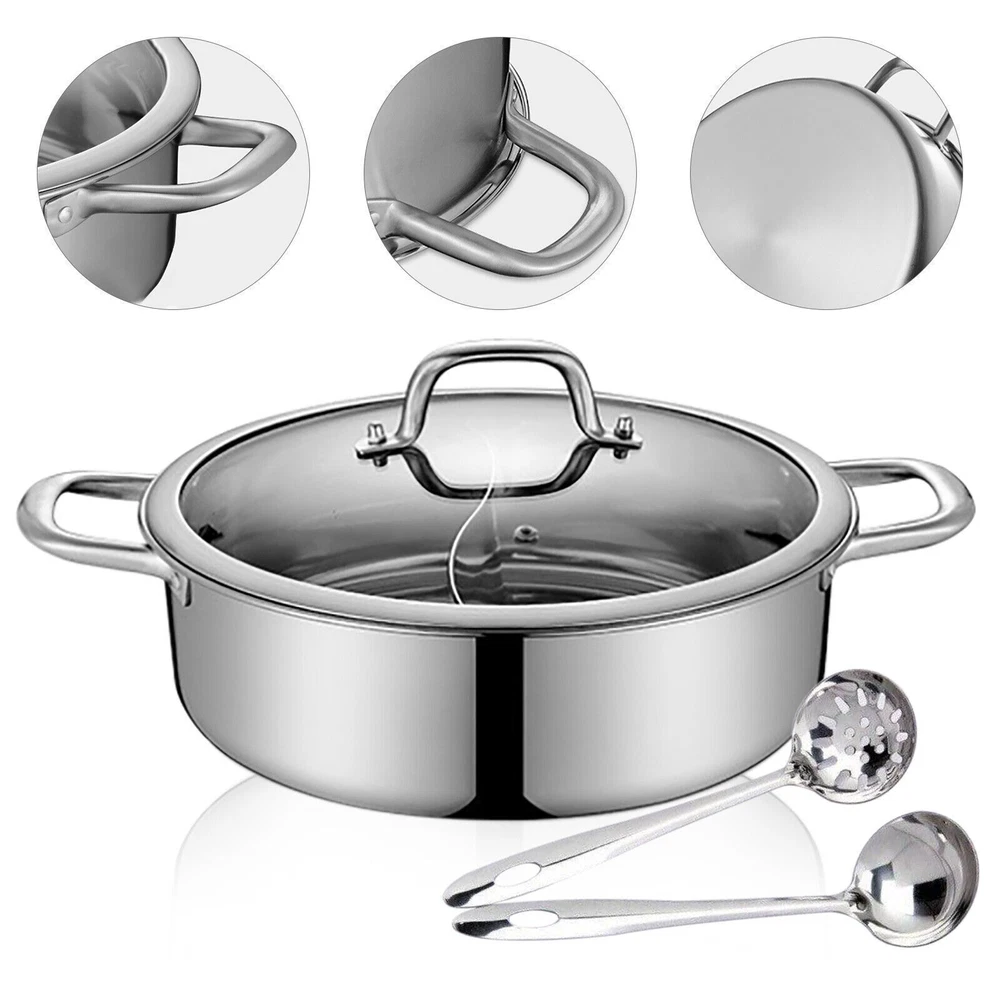 Description: Material:304 Stainless Steel Finish Type:Clear Cut Color:Silver Item Dimensions: 28cm(11inch) Hot pot: LxWxH 11 x 11 x 3.5 inches 32cm(12.6inch) Hot pot: LxWxH 12.6 x 12.6 x 3.7inchs About this item FOOD GRADE MATERIAL Our shabu hot pot is made of food grade 304 stainless steel which could be more durable, lightweight and faster heated.Food grade material guarantee make you safer and more rest assured to enjoy your shabu hot pot time! 28/32cm Stainless Steel Shabu Shabu Dual Sided Cooking Soup Hot Pot with Lid 28/32cm Stainless Steel Shabu Shabu Dual Sided Cooking Soup Hot Pot with Lid Description: Material:304 Stainless Steel Finish Type:Clear Cut Color:Silver Item Dimensions: 28cm(11inch) Hot pot: LxWxH 11 x 11 x 3.5 inches 32cm(12.6inch) Hot pot: LxWxH 12.6 x 12.6 x 3.7inchs About this item FOOD GRADE MATERIAL Our shabu hot pot is made of food grade 304 stainless steel which could be more durable, lightweight and faster heated.Food grade material guarantee make you safer and more rest assured to enjoy your shabu hot pot time! SAFE&DELICATE DESIGE Dual sided divider designed soup cooking pot which could provide you to enjoy two different flavors soup at the same time. The cookware divider is connected with high encryption spot welding procedure so that it will not be easy to leak. Double bottom design which could be more safe used,nice looked and will not slow down the heating efficiency.Rubber covered handle prevent you from scalding. PACKAGE INCLUDED By purchasing our shabu hot pot you will also get 2 food grade stainless steel soup ladles and 1 thicken toughened glass lid. Perfect size and set which is suitable for family, friend party and hot pot restaurant using.Applicable to induction cooker, electric ceramic stove, gas stove, halogen furnace and other stoves. 【FRIENDLY TIPS】 1. Due to the water-tight design, the S-type separator needs to be welded in the middle of the pot so that the weld line could not be covered.If you care about this,we don’t actually recommend you to purchase this. 2. Stainless steel pot itself will not turn yellow, black, rust. This can happen if the heat is too high or if there is oil residue on the outer wall of the pot. So after use, please thoroughly clean and dry, placed in the dry place, to avoid food oil residue. Features -Clapboard solder joint's spacing was very uniform, with bottom pot is very fit. -High encryption spot welding procedure, not easy to leak. -Dual Sided for putting two different flavors. -Double bottom design which could be more safe used,nice looked and will not slow down the heating efficiency Ideal Gift -Nice Gift For Birthday, Anniversary, Celebrations. -Excellent Gift For your daughter, mother, grandmother, colleague, partner, students, girlfriends. Payment Delivery details Terms of sales About us Contact us Payment We accept ebay payment 。 Fees such as import duties, taxes are not included in the item price or shipping costs. These charges are the buyer's responsibility. Delivery details Shipping: 2-9 working days to: USA Terms of sales We maintain high standards of excellence and strive for hundred percent customer satisfaction. Feedback is very important to us. We hope that you contact us immediately before you give neutral or negative feedback, so that we can address your concerns. It is impossible to address issues if we do not know about them! About us Your satis faction is our ultimate goal. We work hard to earn your trust and future business. Our certified technicians have tested each item before shipping. The unit comes with 1 year limited warranty on all manufacturing defects. a) If you receive a defective item, you may return it or ask for a discount. Please contact us within 14 days after you receive the package. b) What you returned must be intact and in its original packaging as re? u. Customer is responsible for shipping costs of the returned item. c) We will cover the cost of shipping back t with the shipping rate indicated in the registration page. We will send you a new unit or refund the full payment you paid. Thank you. Contact us Business Hour Business Hour: Monday To Friday: 8:30 AM to 5:00 PM (Beijing China time) Due to time zones, our reply to your questions may not be immediately. But within above working time, we will reply your email within 24 hours. If it's non-workdays, please kindly be patient and wait till Monday. Please contact us with ebay message. Please feel free to contact us if you have any questions. Monday To Friday: 8:30 AM to 5:00 PM (Beijing China time) Due to time zones, our reply to your questions may not be immediately. But within above working time, we will reply your email within 24 hours. If it's non-workdays, please kindly be patient and wait till Monday. Please contact us with ebay message. Please feel free to contact us if you have any questions. Stove Type Compatibility Induction Brand Unbranded Surface Coating 304 Stainless Steel Set Includes Stockpot Color Silver Type Stockpot Material 304 Stainless Steel Features With Lid Item Diameter 28/32cm Item Width 28/32cm Country/Region of Manufacture China Manufacturer Warranty 3 Years Shape Oval