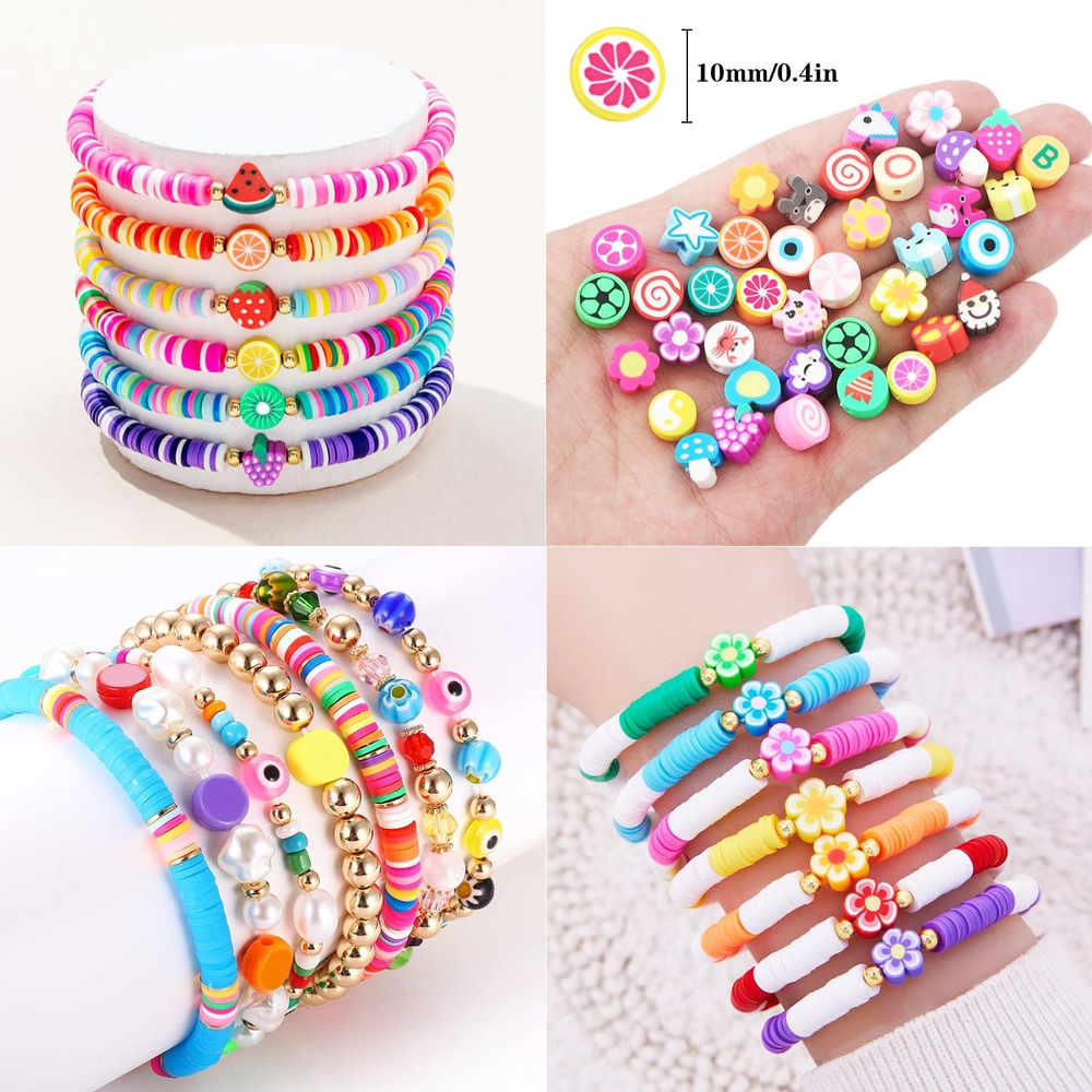 $ 12.735800-Piece Clay Bead Bracelet Kit with 24 Preppy Colors for DIY Friendship Jewelry
