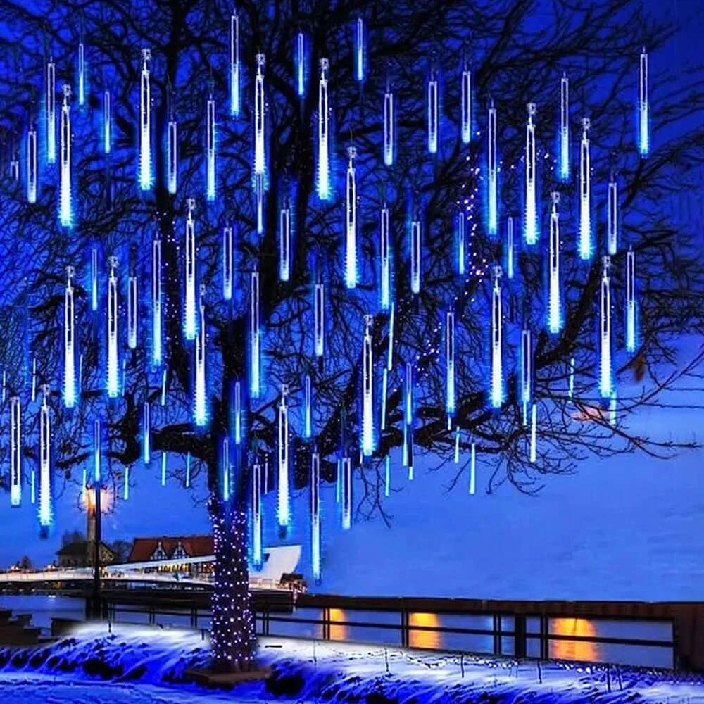 288LED Solar Meteor Shower String Light Falling Rain Garden Party Xmas Tree Lamp