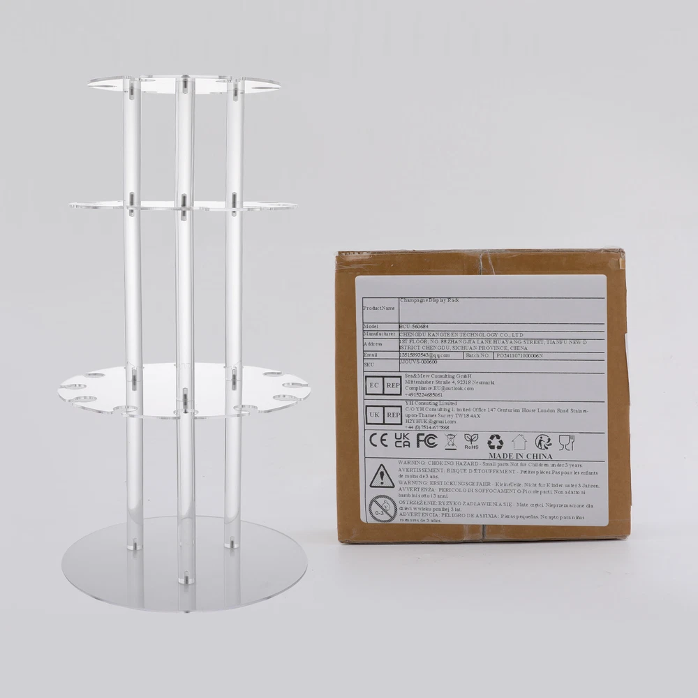 Specification Mount Type: Freestanding Assembly Required: Yes Material: Acrylic Color: Clear Shape: Round Process: Laser-cutting Number of Slots: 28 Number of Tiers: 3 Board Thickness: 4mm/0.16in Overall Load-capacity: 5kg/11.02lbs Diameter of Supporting Legs: 25mm/0.98in Product Size(D*H): 35*65cm/13.78* 26in Package Size: 39*39*9.5cm/15.35*15.35*3.74in Gross Weight: 3.6kg/7.94lbs Net Weight: 3.42kg/7.54lbs Package Included 3* Display Boards 1* Base 9* Supporting Legs Other Mounting Accessories 28-Slot Wine Glass Flight Server Stand Glass Display Rack Stemware Hanger 3-Tire 28-Slot Wine Glass Flight Server Stand Glass Display Rack Stemware Hanger 3-Tire Application It Is Suitable for Displaying and Storing Cups with a 2.5-3.2-Inch Diameter for Various Parties, Birthday Parties, Weddings, Engagement Ceremonies, Festivals, Celebrations, Business Events, and More. Specification Mount Type: Freestanding Assembly Required: Yes Material: Acrylic Color: Clear Shape: Round Process: Laser-cutting Number of Slots: 28 Number of Tiers: 3 Board Thickness: 4mm/0.16in Overall Load-capacity: 5kg/11.02lbs Diameter of Supporting Legs: 25mm/0.98in Product Size(D*H): 35*65cm/13.78* 26in Package Size: 39*39*9.5cm/15.35*15.35*3.74in Gross Weight: 3.6kg/7.94lbs Net Weight: 3.42kg/7.54lbs Package Included 3* Display Boards 1* Base 9* Supporting Legs Other Mounting Accessories Description This Champagne Glass Display Stand, Crafted from Sturdy Materials with a Unique and Elegant Design, Is Ideal for Storing and Displaying Champagne Glasses, Whether for a Family Gathering or a Business Occasion. It Takes the Spotlight and Makes Every Moment of Celebration Shine. Key Features Long Service Life: Made of Excellent Acrylic After Finely Laser-cutting , It Is Impact-resistant, Abrasion-resistant, and Fade-resistant , with a Strong Load-bearing Capacity and High Durability, Not Easy to Deform, to Ensure Your Long-term Use. Moderate Size: the Size of 13.78* 26 Inches Will Not Cause Inconvenience in Holding, and It Also Provides Enough Slots to Hold up to 28 Champagne Glasses to Meet Your Party Requirements. Sturdy and Stable: Made of 4mm Acrylic, As Well As 3 Solid Support Legs with 0.98-Inch Diameter per Tier and Reinforced with Metal Screws, It Has a Reliable Weight Capacity (11.02 Lbs), Allowing You to Place Champagne Glasses with Peace of Mind and Share Delicious Champagne with Your Guests. Humanized Design: This Product Can Be Divided into 3 Tiers of Removable Shelves, so You Can Choose the Number of Tiers to Be Assembled According to the Actual Requirements. Details Ω Cup Holders: Designed with Ω Cup Holders, It Is More Convenient to Hold and Place the Wine Glasses. Notes Please Check the Style and Size Before Purchasing. Please Note That This Item Does Not Include Champagne Glasses or Champagne Inside. Please Do Not Place Items That Exceed the Maximum Load Capacity of the Product. Please Allow the Slight Color Difference Caused by the Shooting Light and 1-3cm Error Due to Manual Measurement and Make Sure You Do Not Mind Before Ordering. Payment Delivery details Terms of sales About us Contact us Payment We accept ebay payment 。 Fees such as import duties, taxes are not included in the item price or shipping costs. These charges are the buyer's responsibility. Delivery details Shipping: 2-9 working days to: USA Terms of sales We maintain high standards of excellence and strive for hundred percent customer satisfaction. Feedback is very important to us. We hope that you contact us immediately before you give neutral or negative feedback, so that we can address your concerns. It is impossible to address issues if we do not know about them! About us Your satis faction is our ultimate goal. We work hard to earn your trust and future business. Our certified technicians have tested each item before shipping. The unit comes with 1 year limited warranty on all manufacturing defects. a) If you receive a defective item, you may return it or ask for a discount. Please contact us within 14 days after you receive the package. b) What you returned must be intact and in its original packaging as re? u. Customer is responsible for shipping costs of the returned item. c) We will cover the cost of shipping back t with the shipping rate indicated in the registration page. We will send you a new unit or refund the full payment you paid. Thank you. Contact us Business Hour Business Hour: Monday To Friday: 8:30 AM to 5:00 PM (Beijing China time) Due to time zones, our reply to your questions may not be immediately. But within above working time, we will reply your email within 24 hours. If it's non-workdays, please kindly be patient and wait till Monday. Please contact us with ebay message. Please feel free to contact us if you have any questions. Monday To Friday: 8:30 AM to 5:00 PM (Beijing China time) Due to time zones, our reply to your questions may not be immediately. But within above working time, we will reply your email within 24 hours. If it's non-workdays, please kindly be patient and wait till Monday. Please contact us with ebay message. Please feel free to contact us if you have any questions. On Aug 11, 2025 at 20:18:57 PDT, seller added the following information: