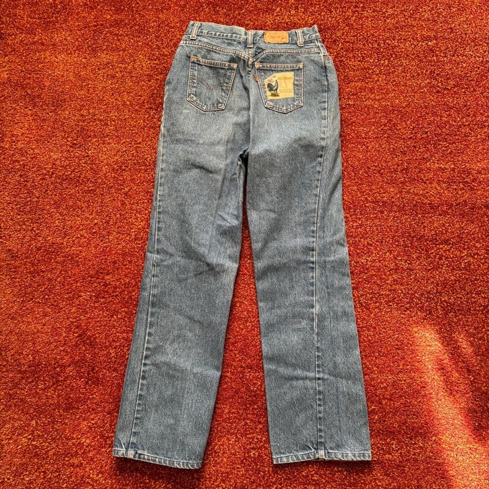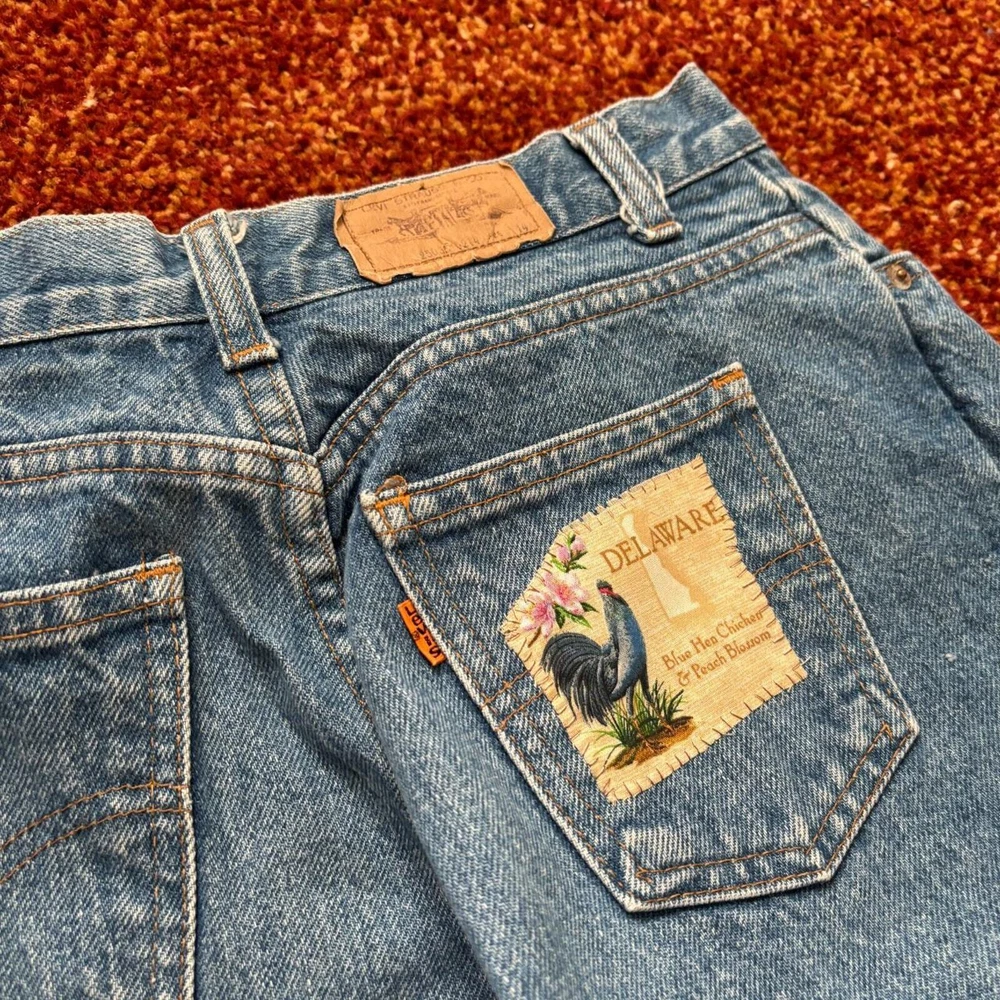 28x30.5 patchwork vintage 1970s-80s Levis orange tab jeans Good condition, original Delaware rooster patch on the back Ladies style levis with zipper fly, good shape Bundle for free shipping