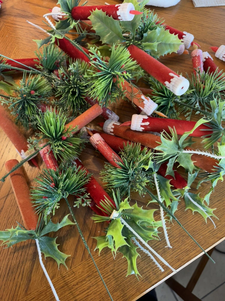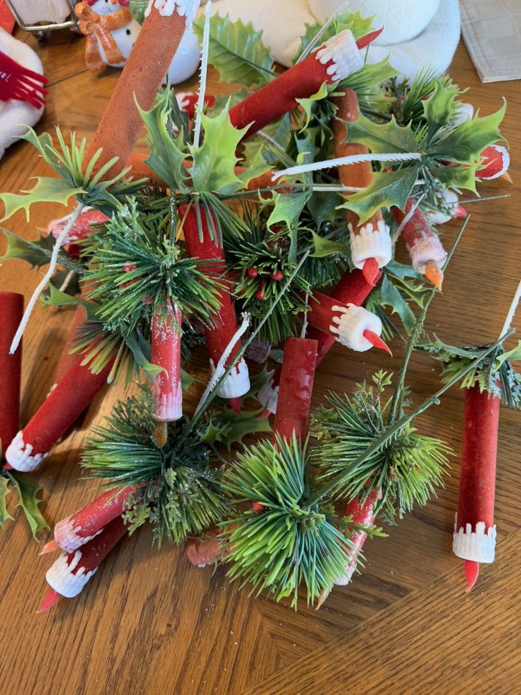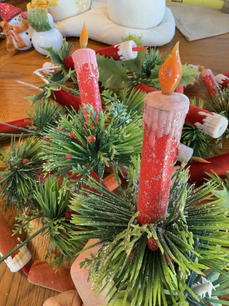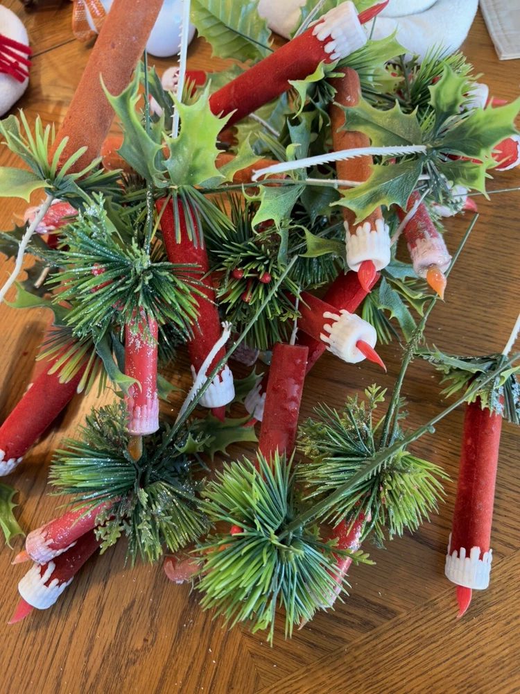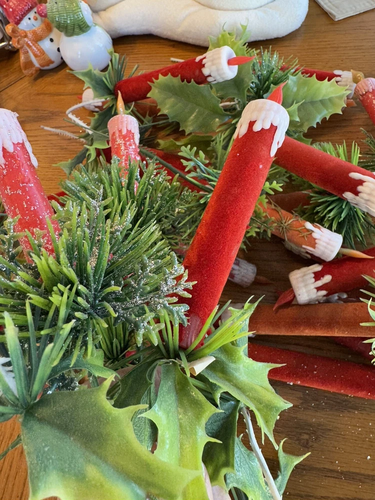 29 VINTAGE Christmas Flocked Plastic Candles with Holly Spikes Kitschy Decor