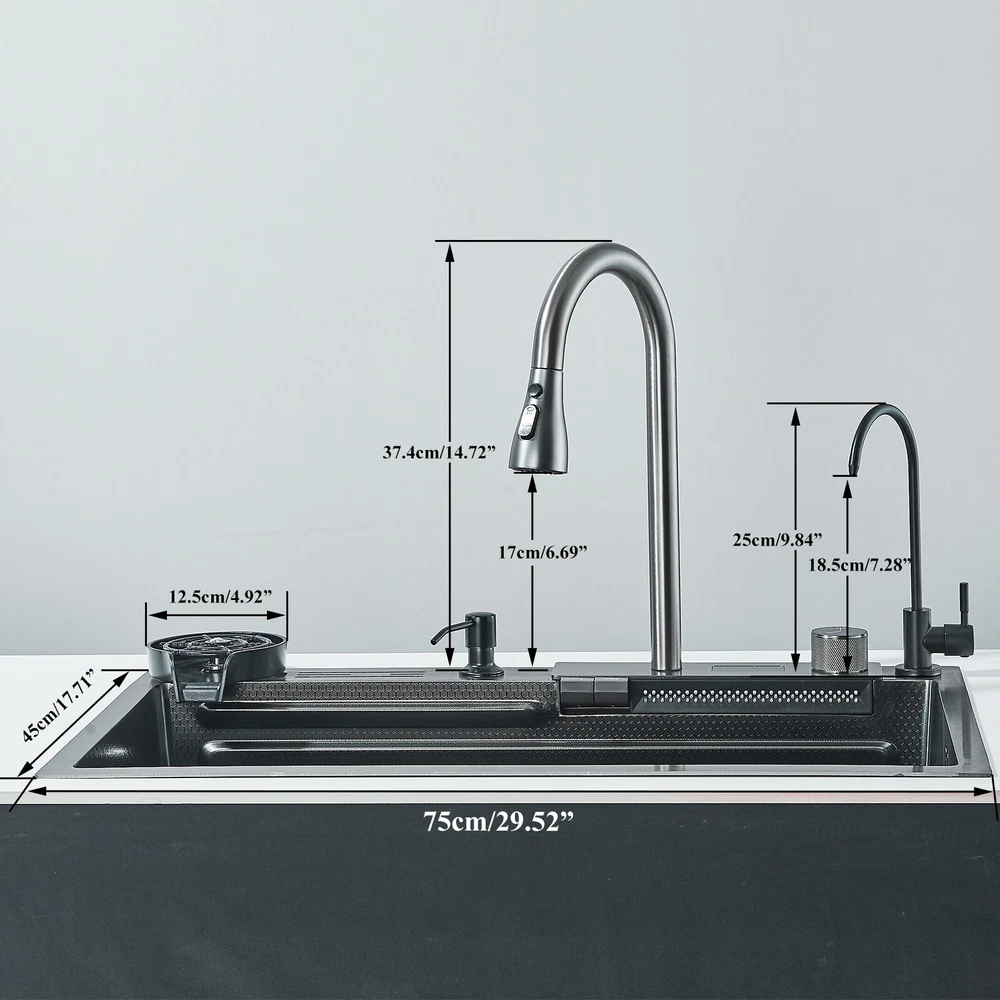 Store Categories Store Categories China Warehouse Shipment CN-Accessories CN-Basin Faucet CN-Bathtub Faucet CN-Kitchen Faucet CN-Shower Faucet CN-Shower Panel CN-Shower Set CN-Shower Head U.S. warehouse shipment Accessories Basin Faucet Bathtub Faucet Kitchen Faucet Shower Faucet Shower Head Shower Panel Shower Set Kitchen Faucet 2 UK warehouse shipment Accessories Basin Taps Bathtub Taps Kitchen Taps Shower Taps Shower Head Shower Panel Shower Set Shipment from German warehouse Other Product Certification Details Function: Kitchen sink with Kitchen Sink Faucet Feature: Integrated faucet Finish: Matte Gray Sink Length: 750 mm Sink width: 460 mm Sink height: 210 mm Faucet Total Height: 400 mm Spout Height: 190 mm Faucet Body Material: Stainless steel Faucet Spout Material: ABS Plastics Sink Material: 201 Stainless steel Shipment & conditions Payment Method Contact us Feedback Shipment & conditions Usually shipment can be arranged within 2working days after receiving payment. Each item can be shipped out if payment received before 17:00 each day. We usually ship via Fedex , UPS, USPS. We have warehouses in many locations in the United States, and will use the warehouse closest to you for shipment. We ship to the address in the order.Therefore, please make sure that the address you fill in when purchasing is correct. After the product ships, the estimated delivery time in the order is the best-case scenario. We cannot guarantee delivery within the estimated delivery time. Because logistics and transportation have great uncertainty. The buyer is responsible for returning the product if it is not a quality problem. Payment Method Paypal, Google Pay, VISA, AMEX, etc. Contact us Shipping damage has to be reported within 5 business days of which the product was delivered. If you have any questions, please be free to contact with us,we will answer your questions ASAP. We will answer your question via email, please check your email for the answers. Feedback I describe items as well as I can. If I have missed something, please let me know. Please e-mail me before leaving feedback if you are unhappy with your item, so we can work it out. International Buyers – Please Note: Import duties, taxes, and charges are not included in the item price or shipping cost. Urheberrecht©Xifumixertaps On Oct 18, 2024 at 00:51:29 PDT, seller added the following information: