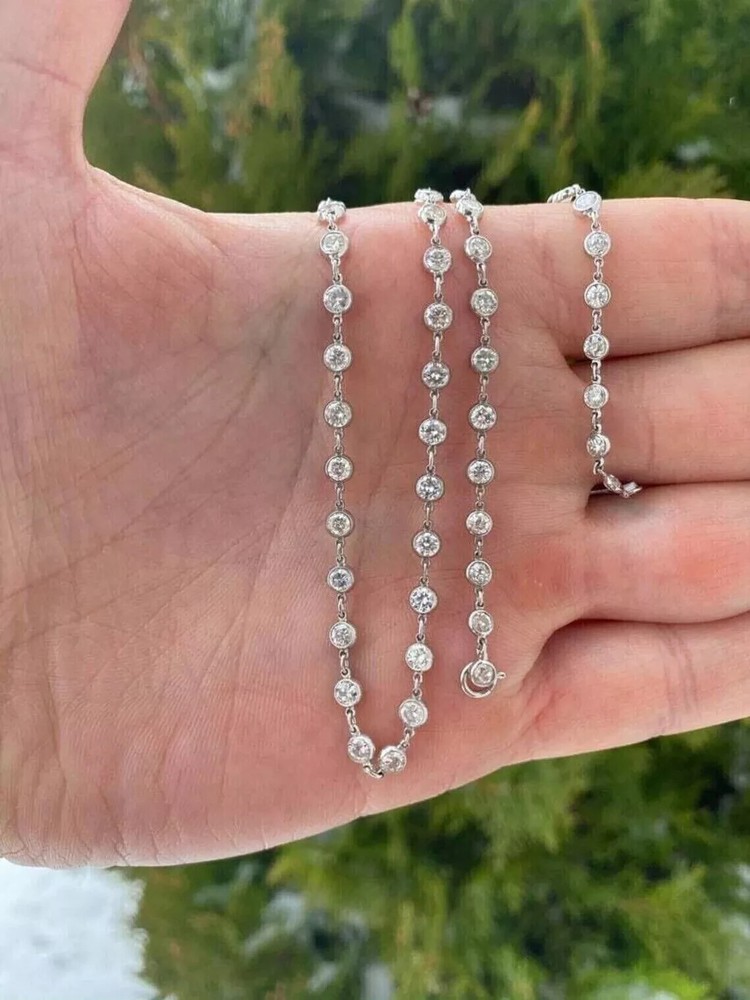Seller made matching emerald cut lab morganite tennis bracelet and necklace. Flawless craftsmanship, stunningly gorgeous on! I recommend this SPLENDID Seller & am buying as many sets as he can make in different gems! Considerate communication! Perfect transactions 😊🎶👏🏻