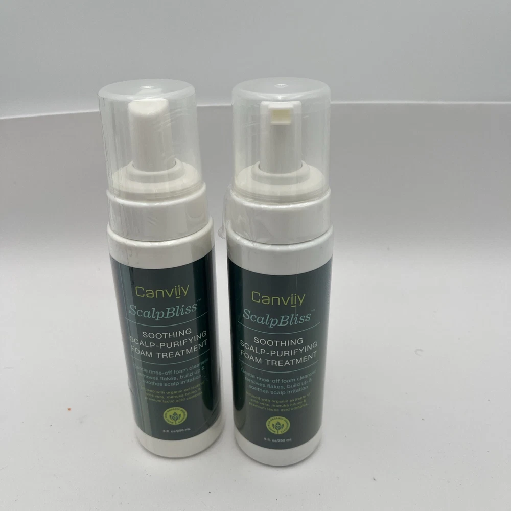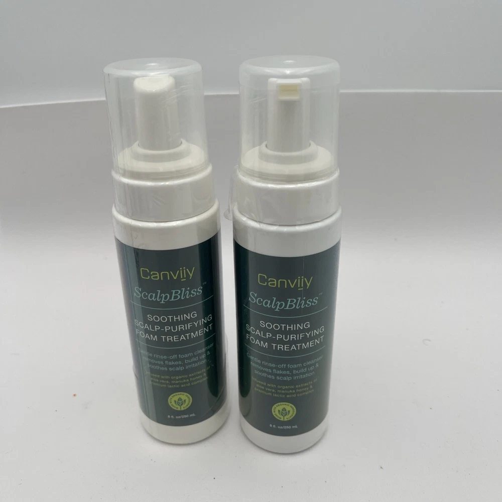 2-Canviiy ScalpBliss Soothing Scalp-Purifying Foam Treatment to Clear Flakes,.... Plastic is a little loose around the cap on one bottle. But item has never been used.